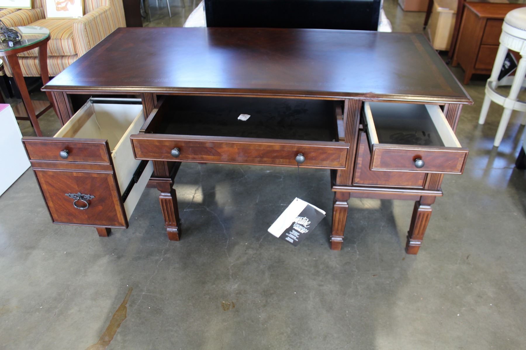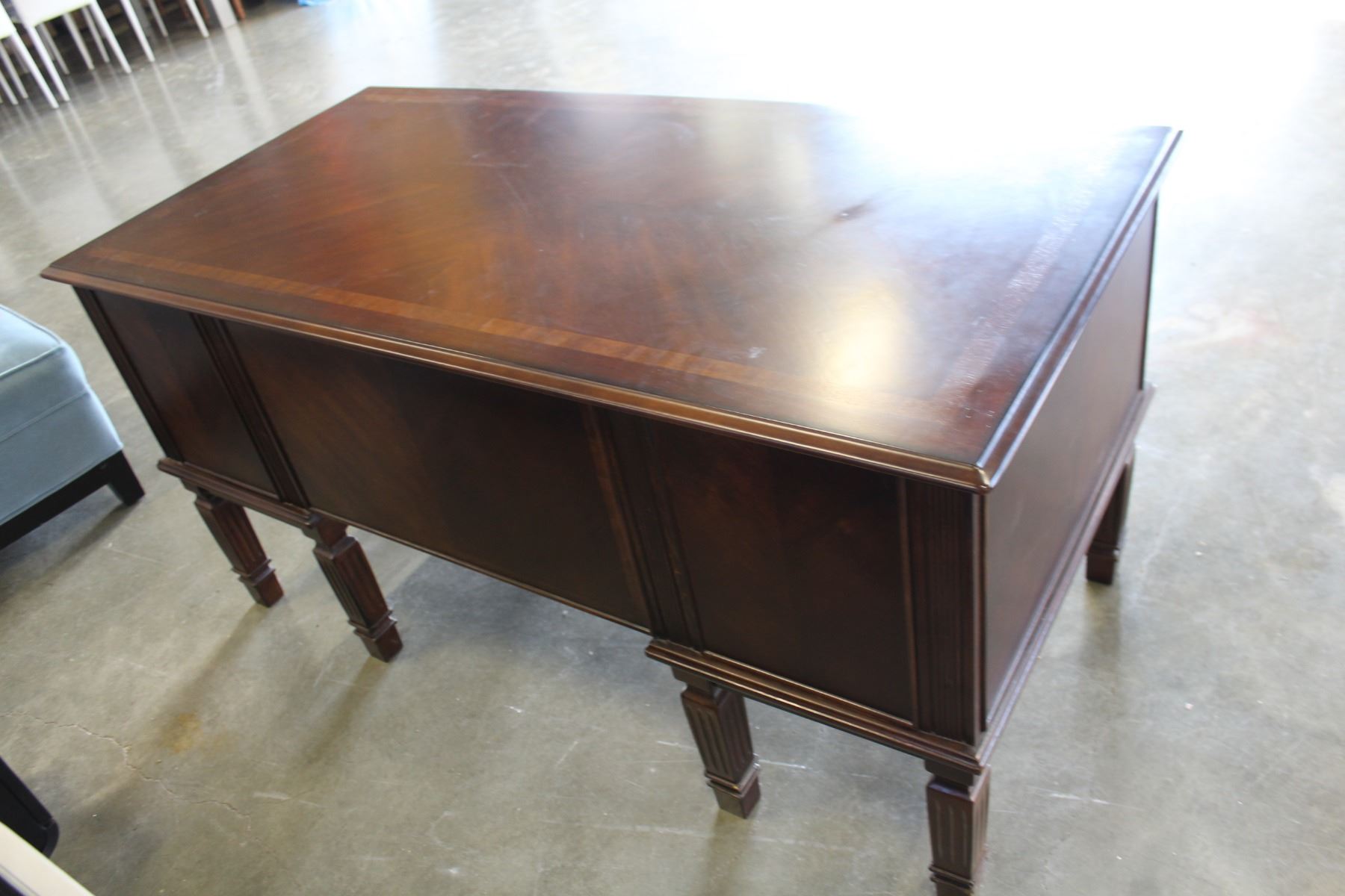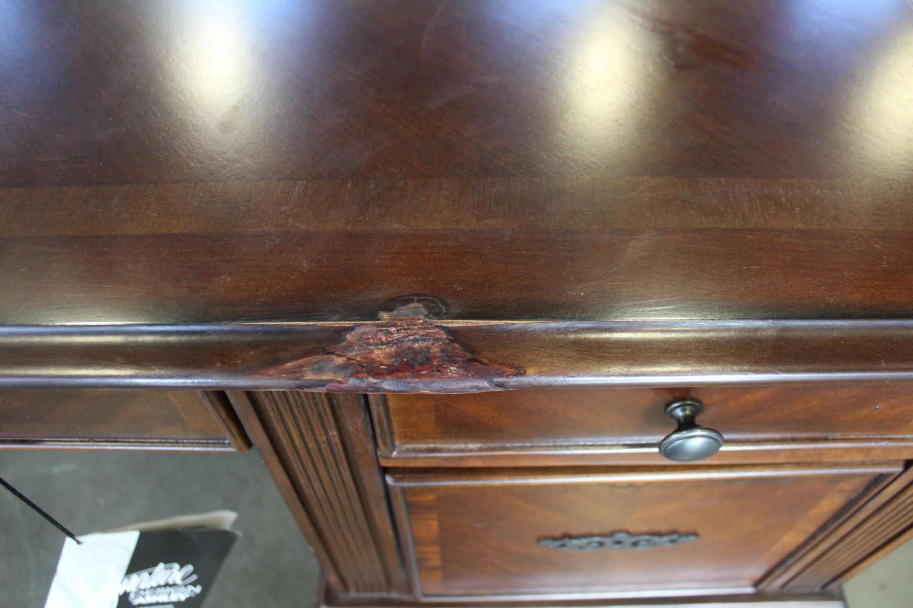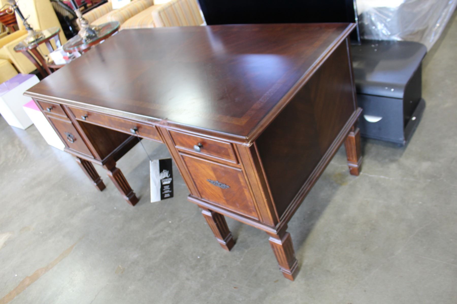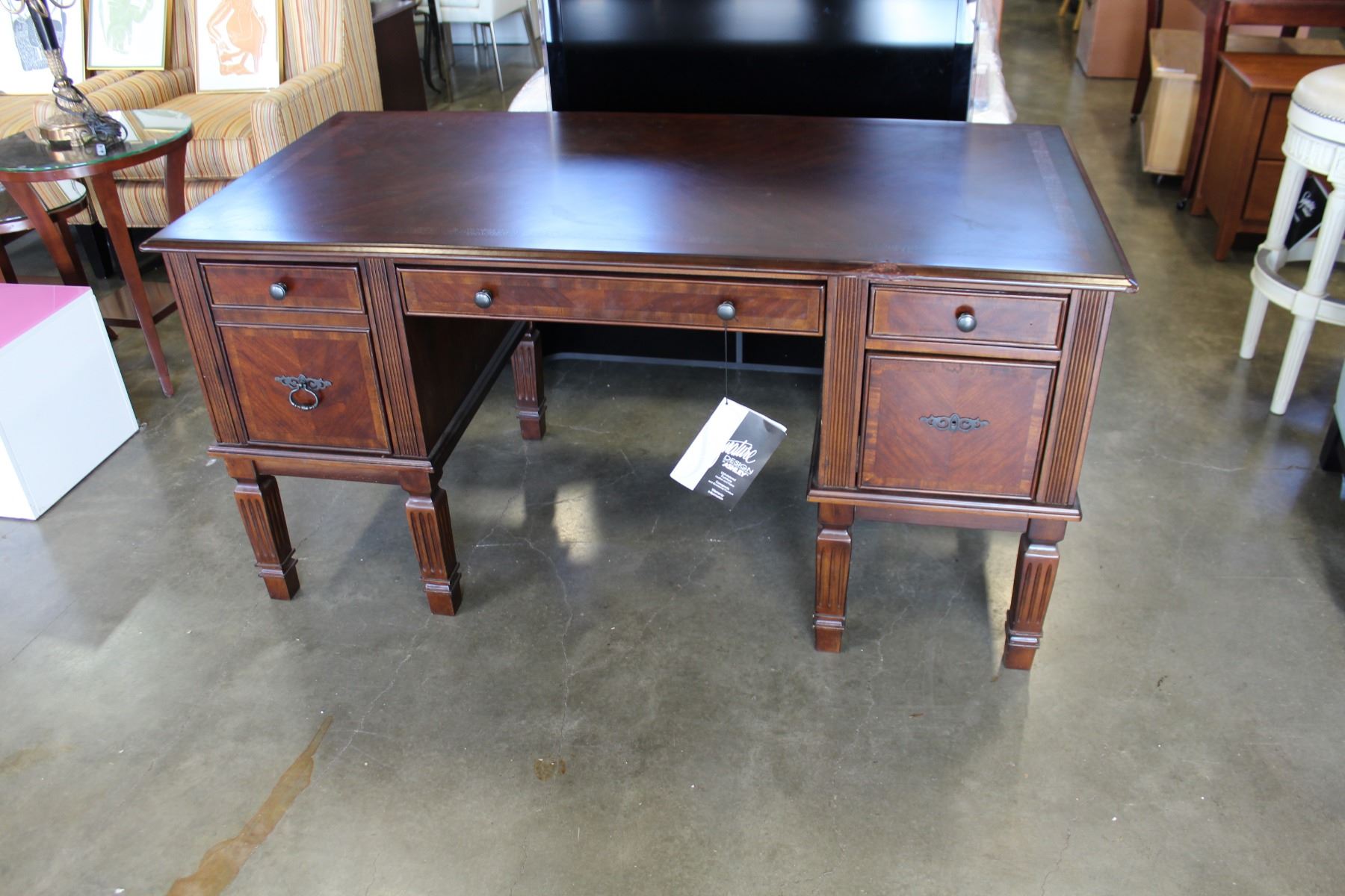 ASHLEY SIGNATURE FLOOR MODEL DARK FINISH EXECTUIVE DESK, MINOR COSMETIC DAMAGE, RETAIL $ 1299