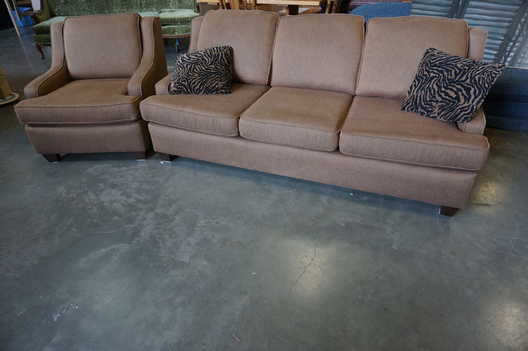 ASPEN GROVE BROWN UPHOLSTERED SOFA AND ARMCHAIR