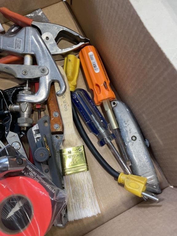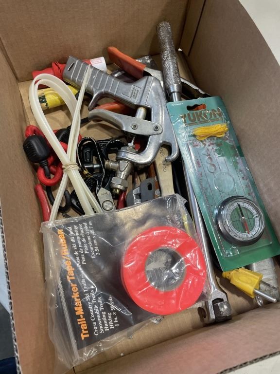 ASSORTED AHDNT OOLS, AIR GUN, AND NEW BIKE LOCK