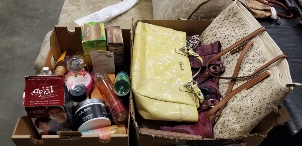 ASSORTED BEAUTY PRODUCTS AND PURSES