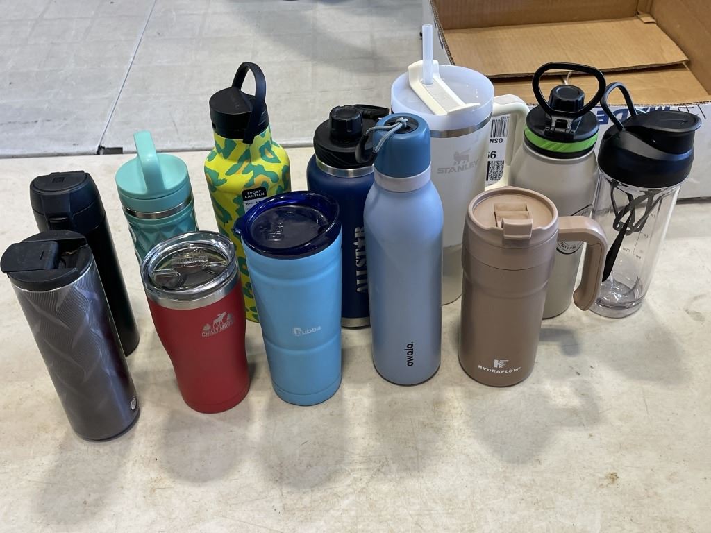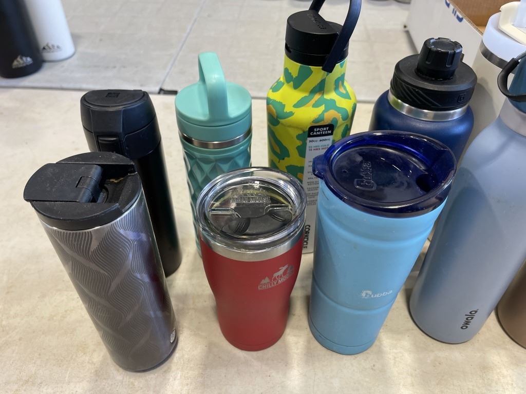 ASSORTED BRAND NAME DUAL INSULATED WATER BOTTLES AND COFFEE MUGS