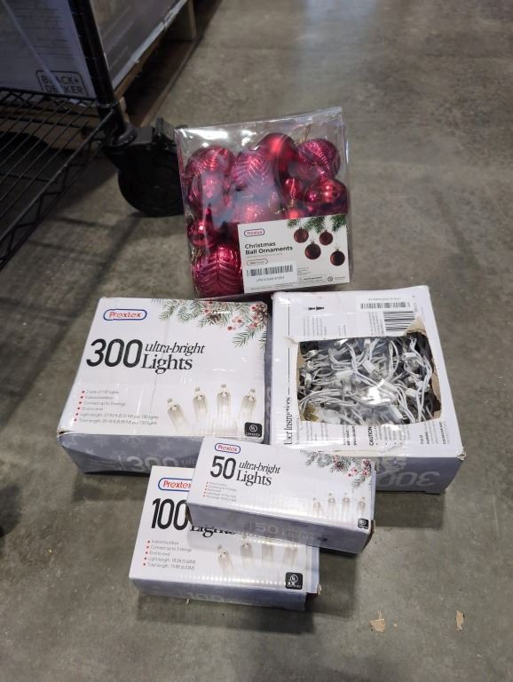 ASSORTED CHRISTMAS LIGHTS AND DECORATIVE BALLS