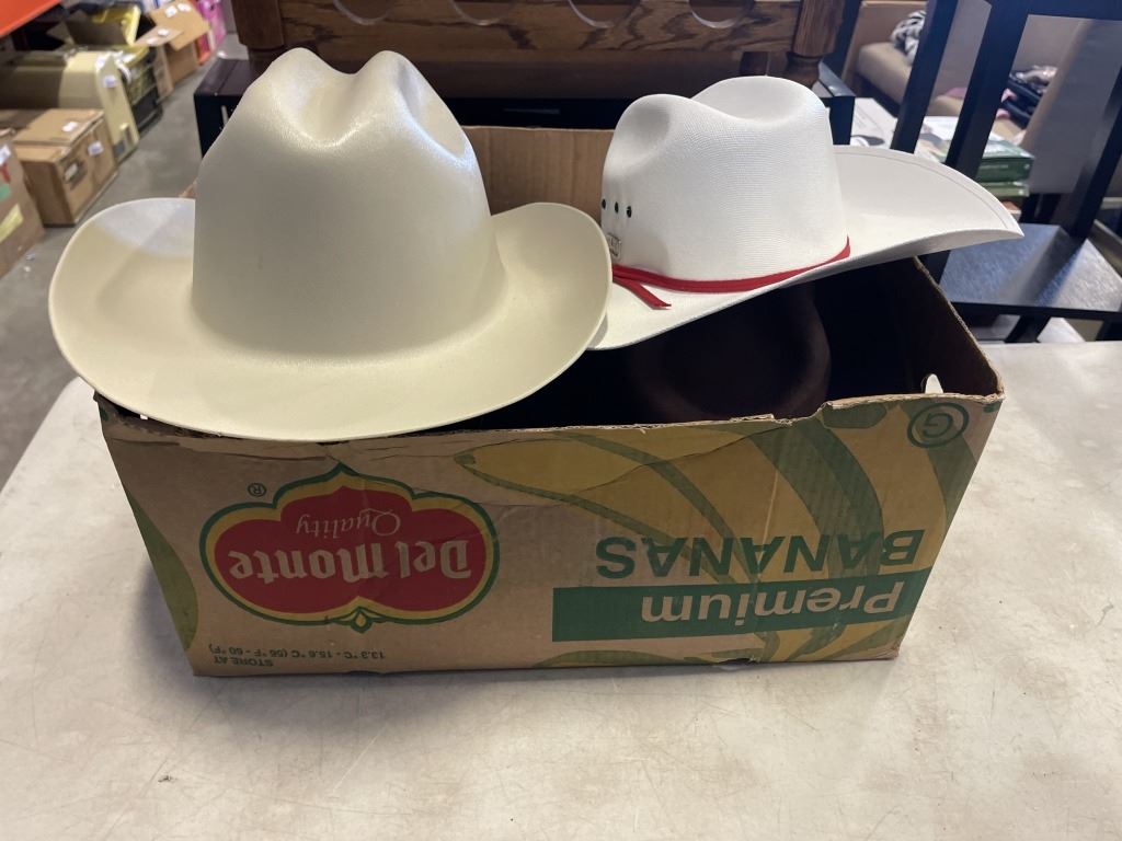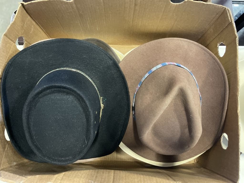ASSORTED COWBOY AND SUN HATS, INCLUDING KIMBERLEY CLARK COWBOY HARD HAT
