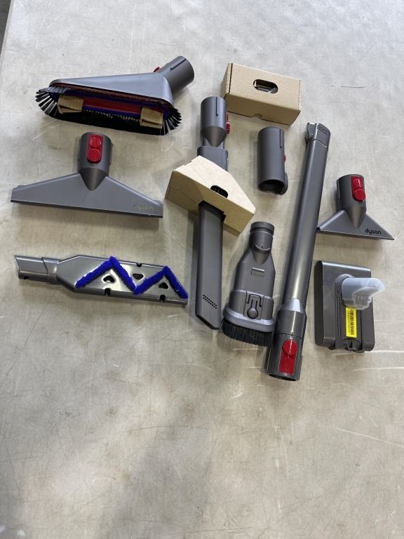 ASSORTED DYSON ATTACHMENTS AND BATTERY