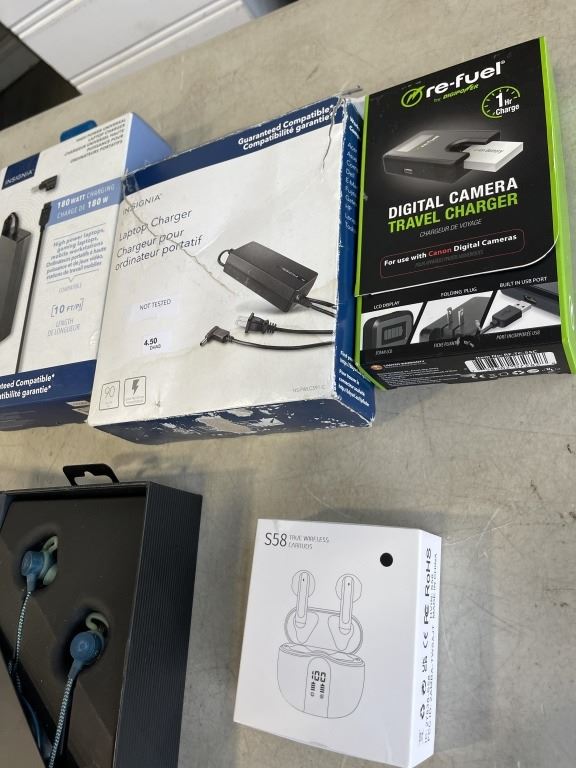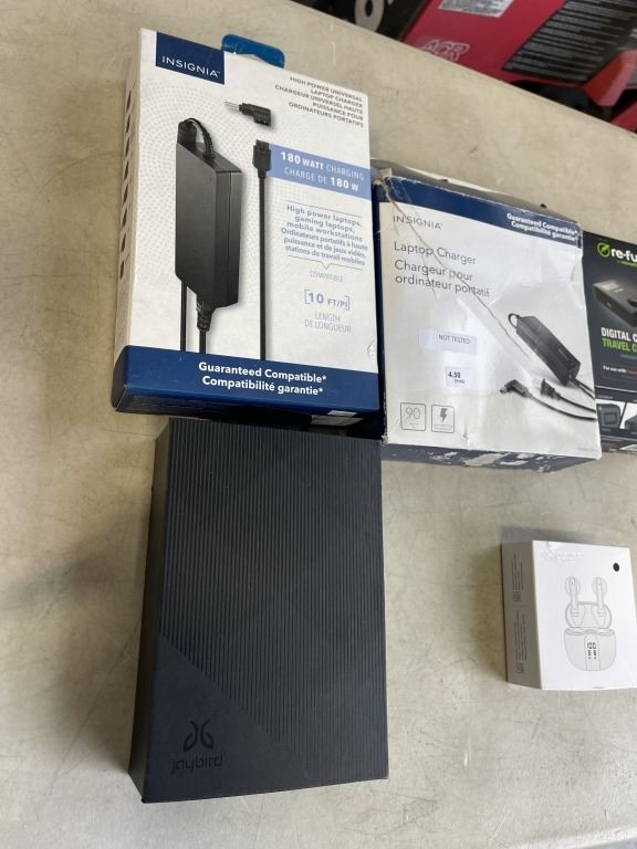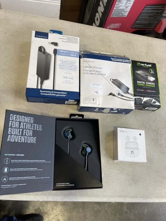 ASSORTED ELECTRONICS, CHARGERS, HEADSETS INCLDUDING JAYBIRD BLUETOOTH, AND REFUEL CHARGER