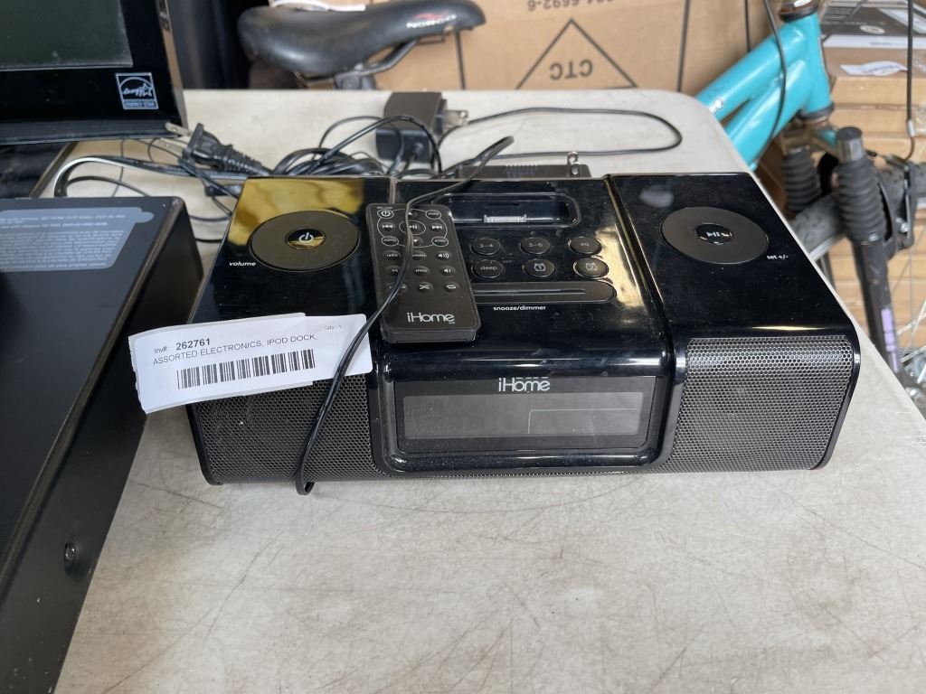 ASSORTED ELECTRONICS, IPOD DOCK, BOOBOX, DVD PLAYERS AND MONITOR