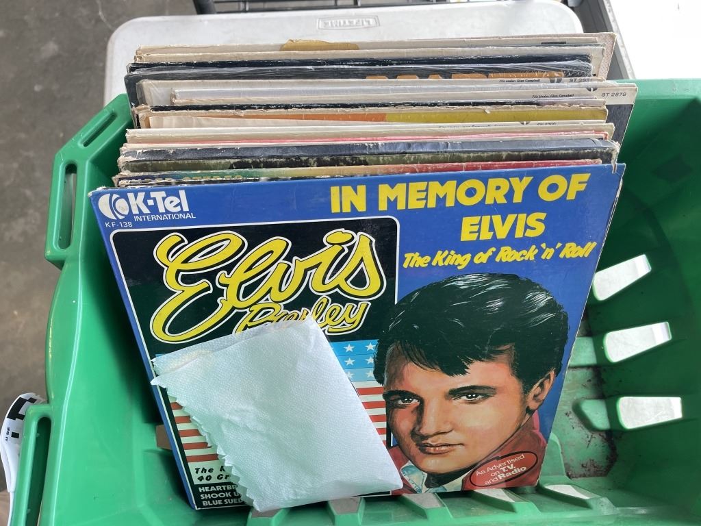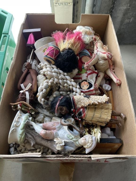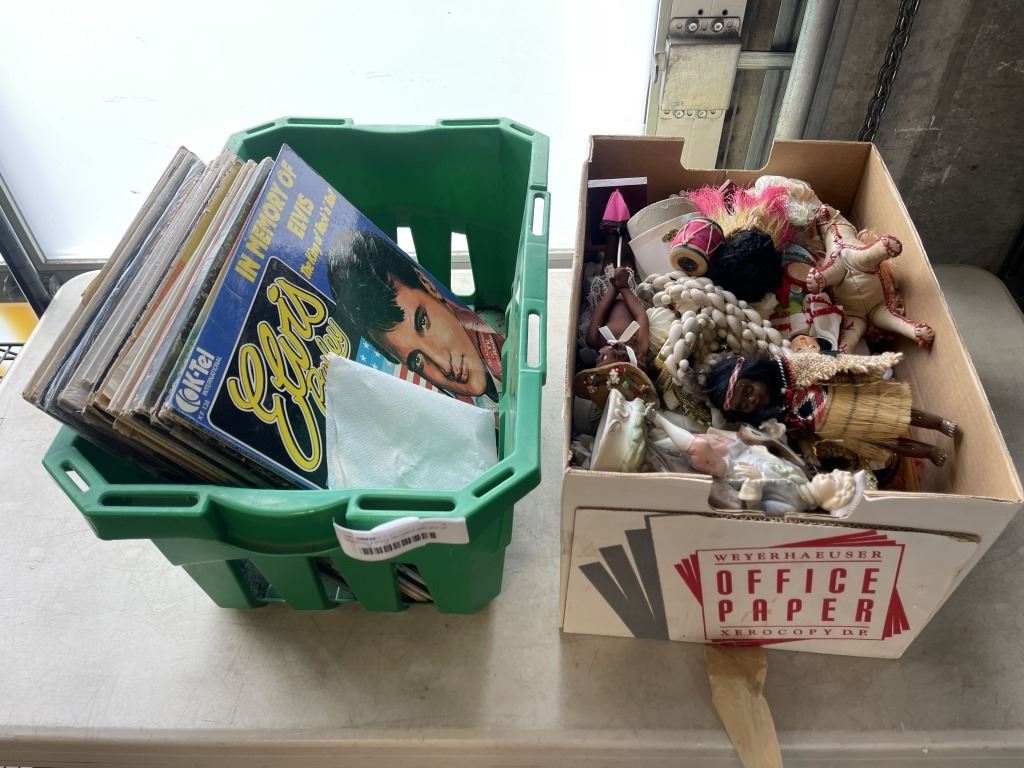 ASSORTED ESTATE RECORDS AND BOX OF COLLECTIBLE DOLLS AND MINIATURES