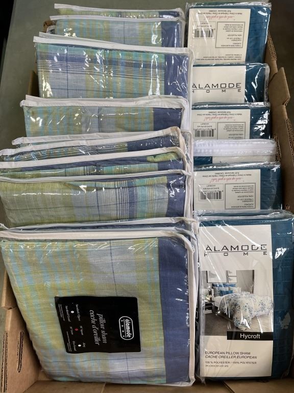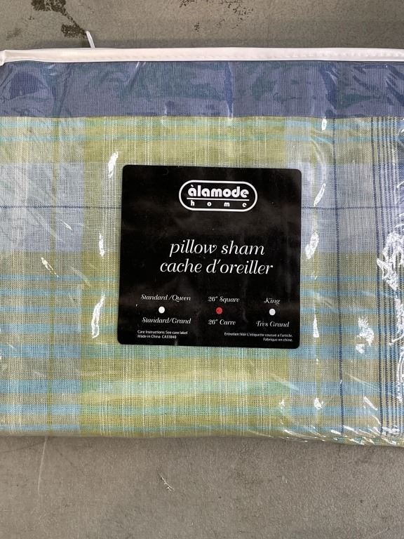 ASSORTED NEW DECORATE PILLOW SHAMS. SIZES 24 INCH SQUARE AND 26 INCH SQUARE