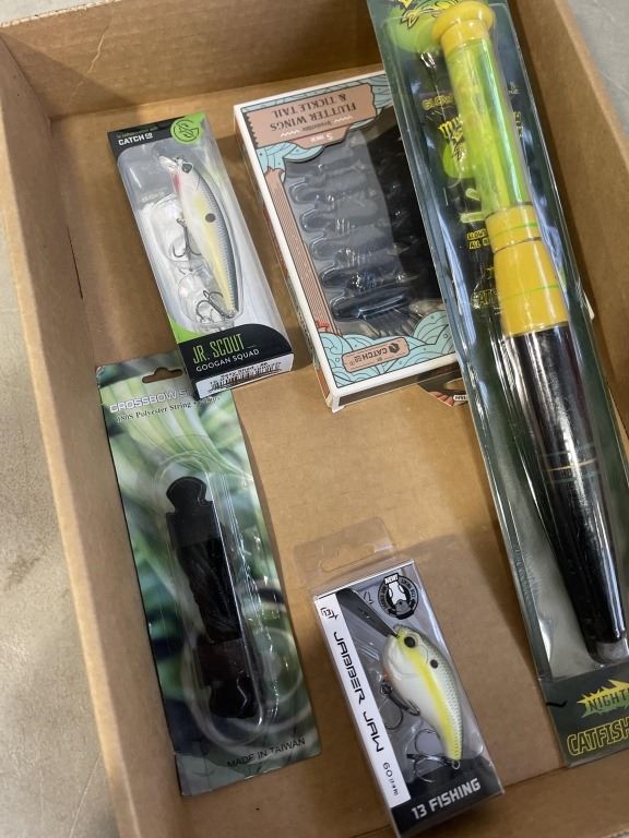 ASSORTED NEW FISHING LURES, CROSSBOW STRINGS ETC