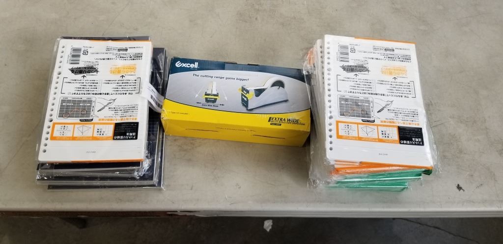 ASSORTED NEW NOTEPADS, BINDER REFILLS AND TAPE DISPENSER