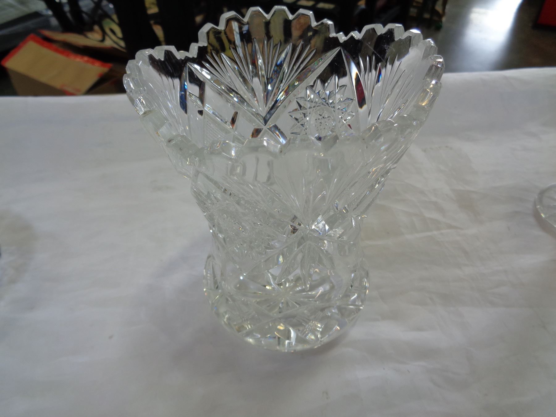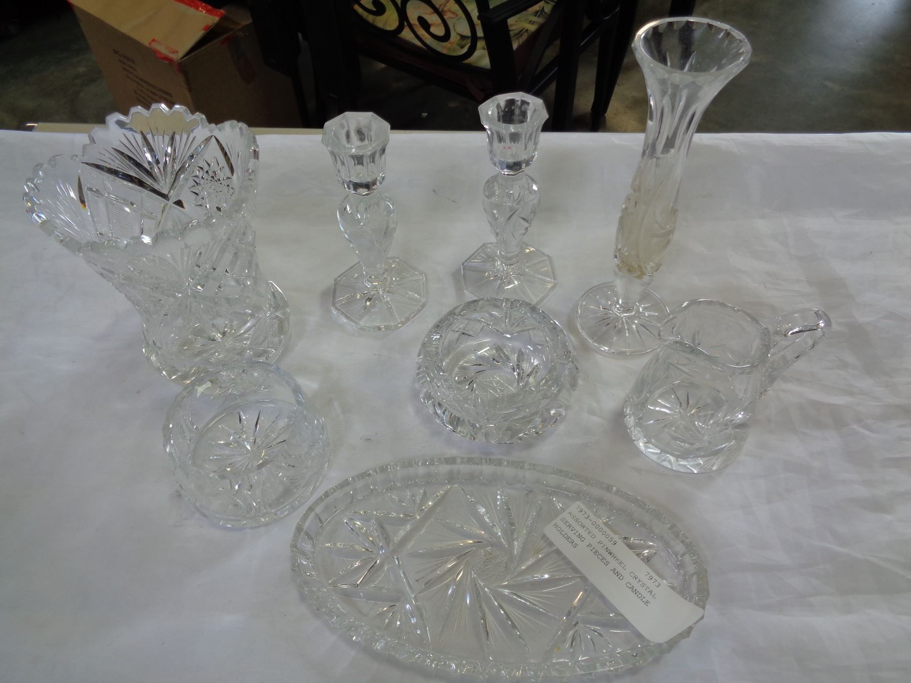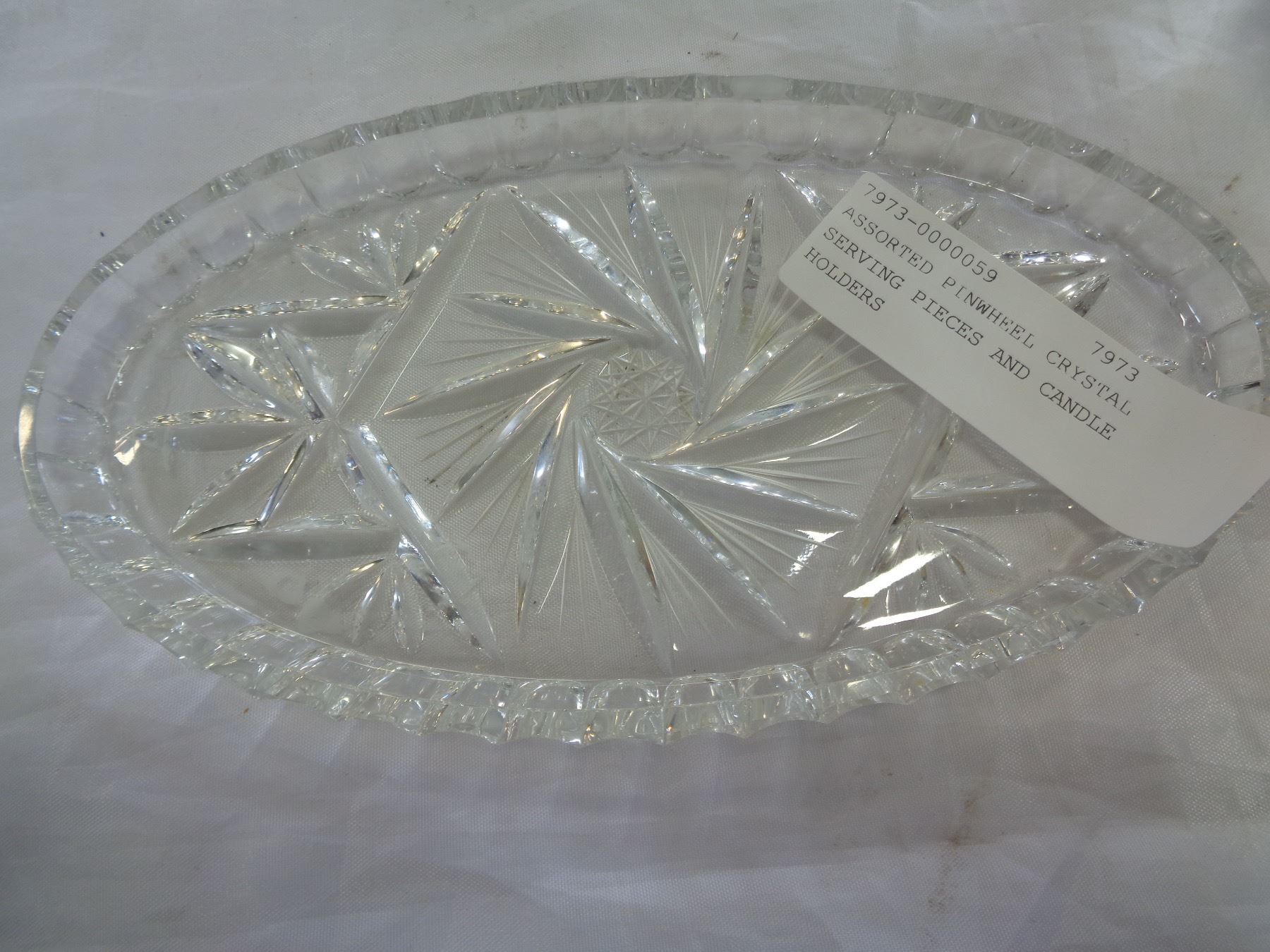 ASSORTED PINWHEEL CRYSTAL SERVING PIECES AND CANDLE HOLDERS