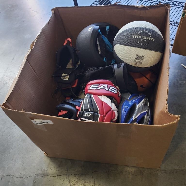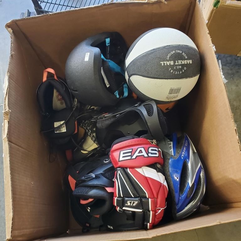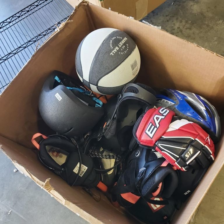 ASSORTED SPORTS ITEMS, INCLUDING BASKETBALLS, 2 PAIRS OF ROLLER BLADES, HELMETS ETC