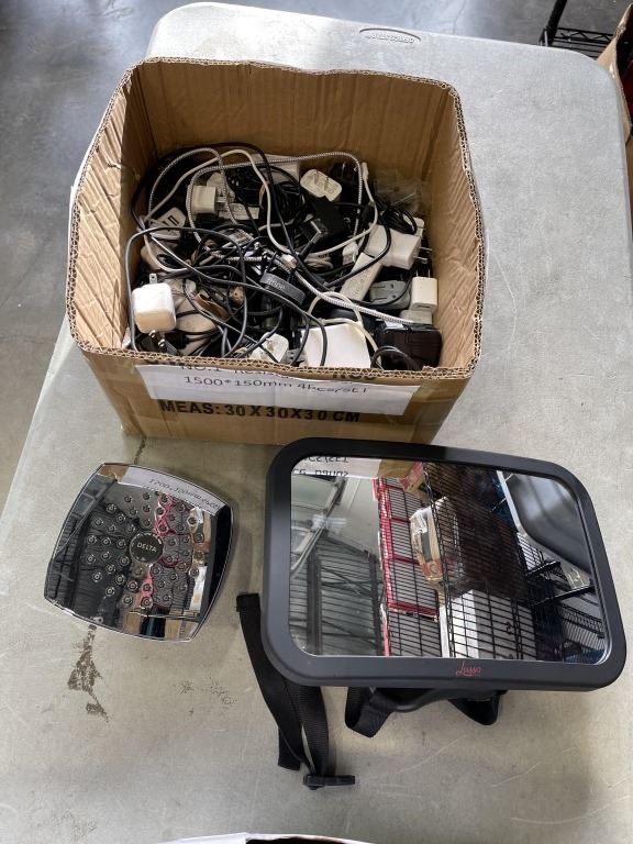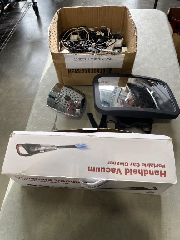 ASSORTED USB CHARGERS, BABY REAR VIEW CAR MIRROR, AND HANDHELD VACUUM