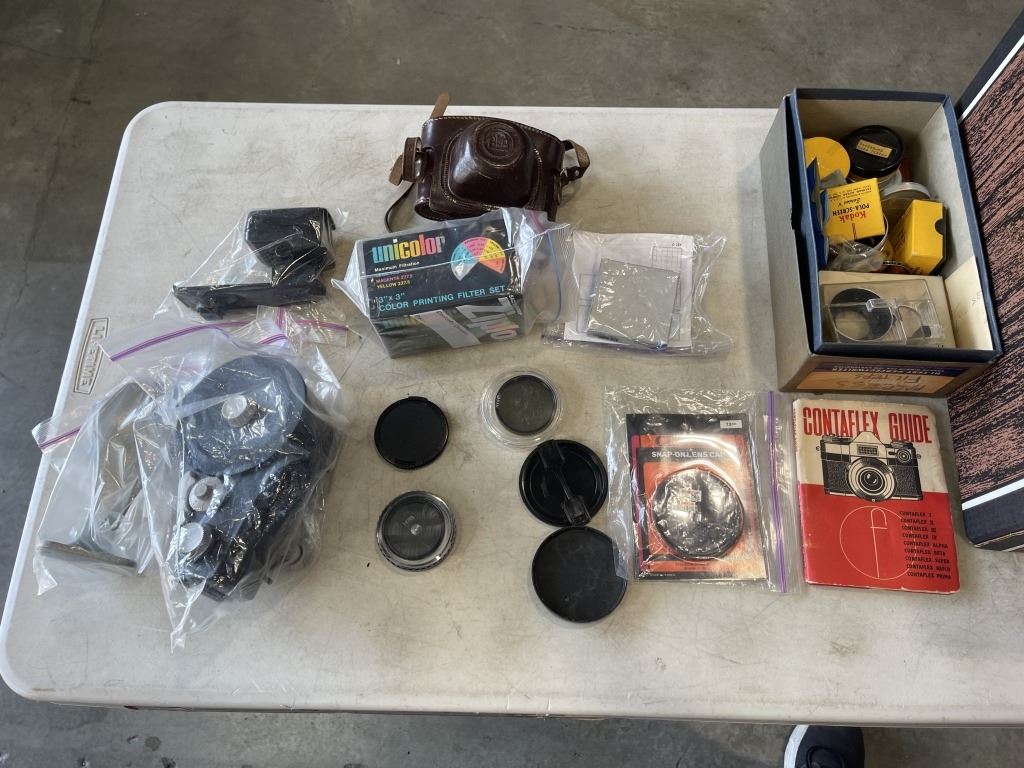 ASSORTED VINTAGE CAMERA FILTERS AND ACCESSORIES