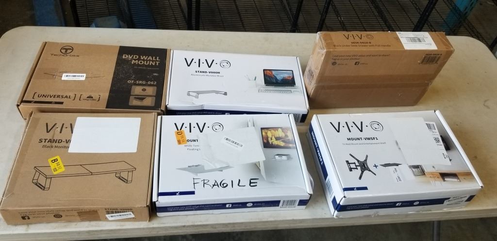 ASSORTED VIVO WALL MOUNT CHELF, MOUNTS AND RISER