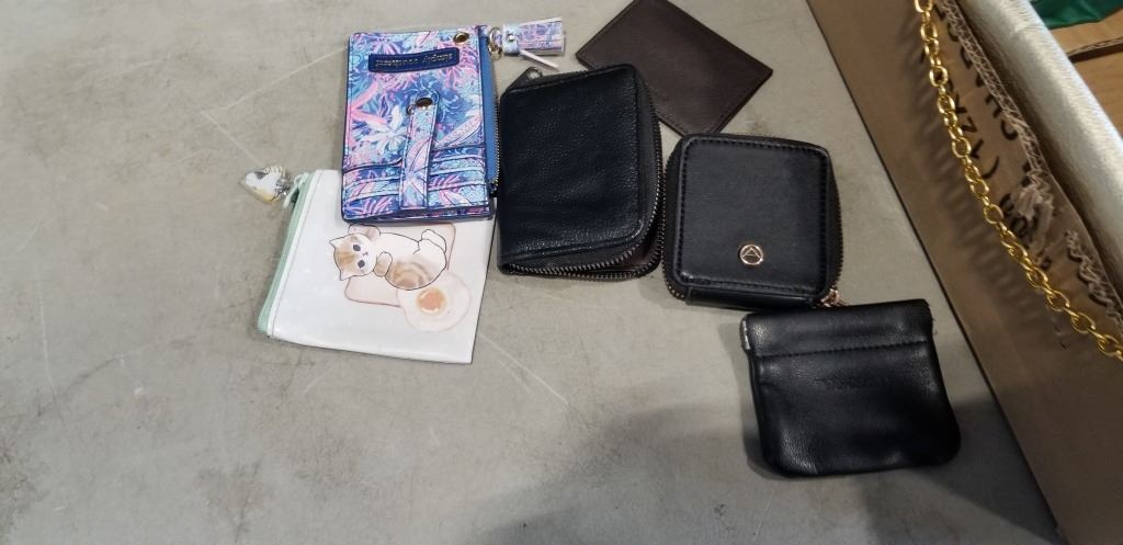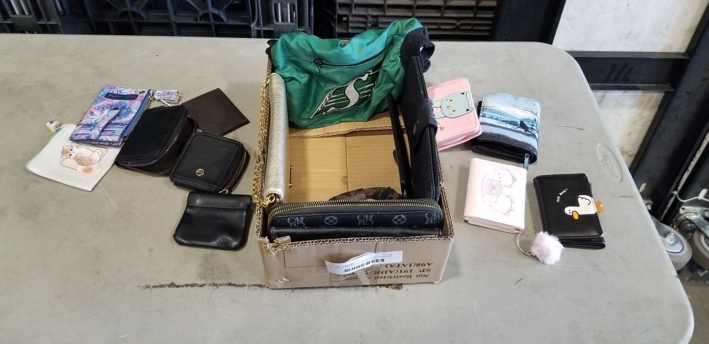 ASSORTED WALLETS AND SASKATCHEWAN ROUGH RIDERS HAND WARMER, ETC