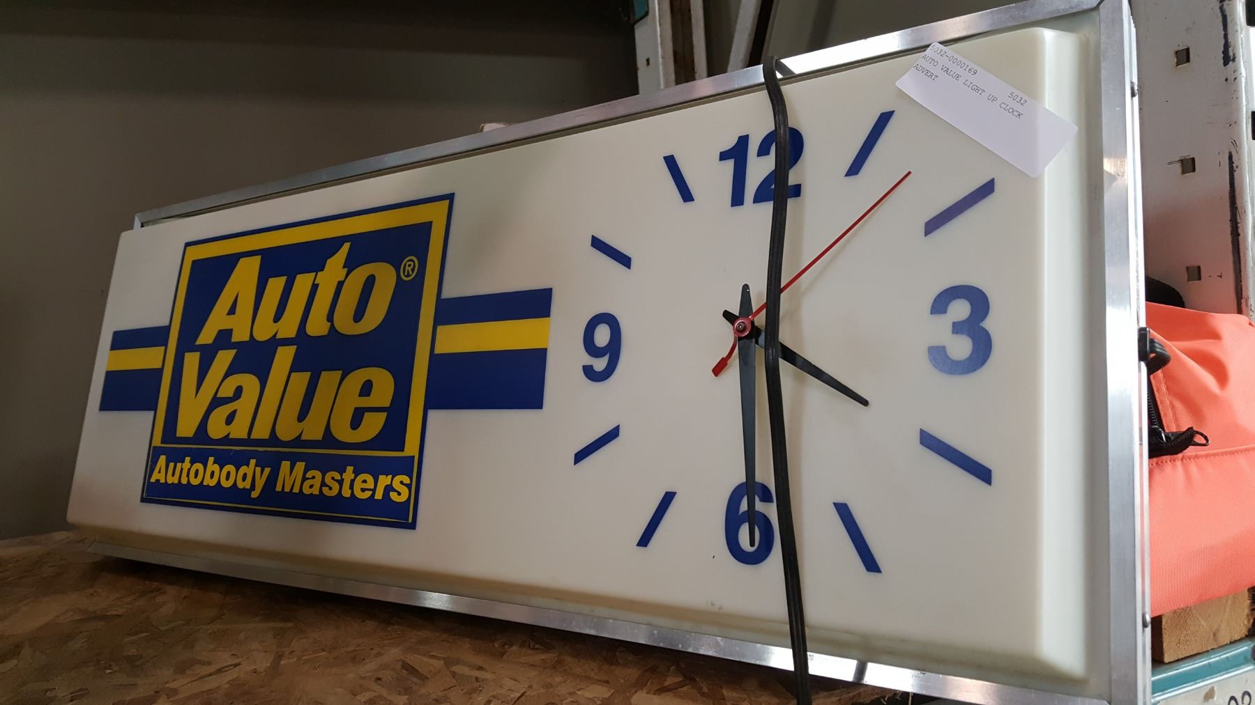 AUTO VALUE LIGHT UP CLOCK ADVERT