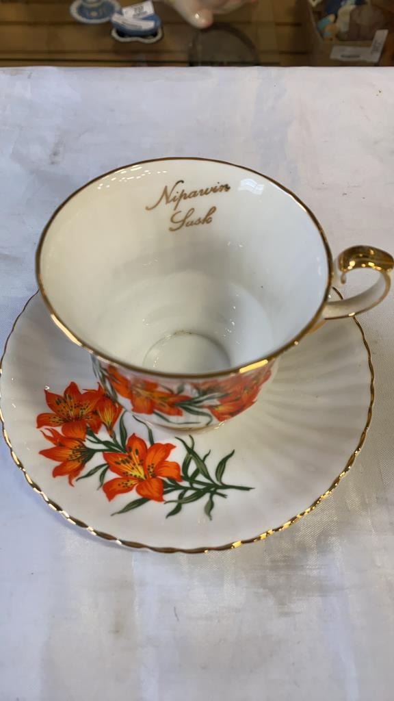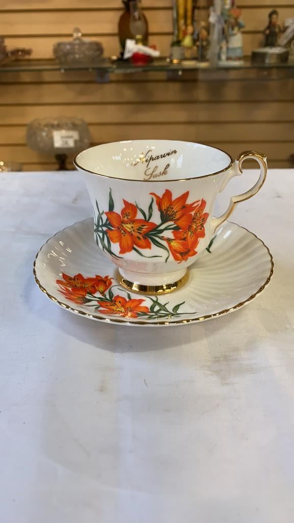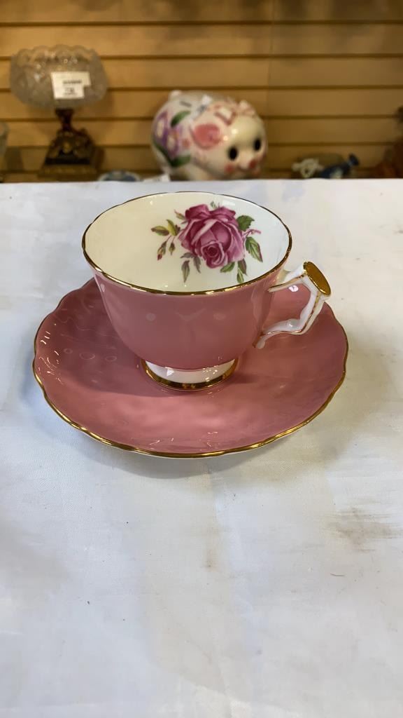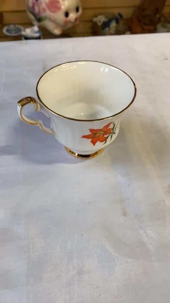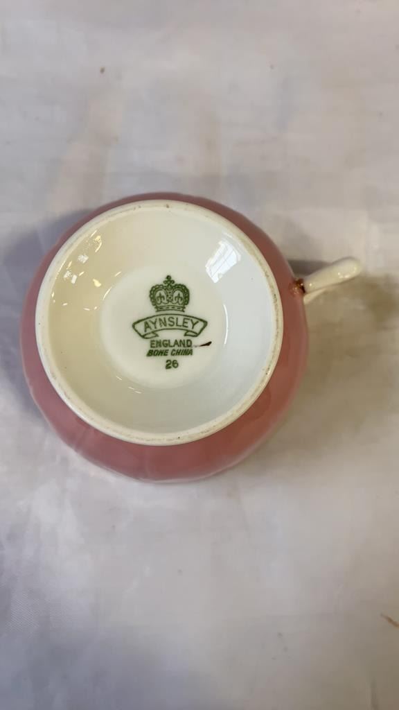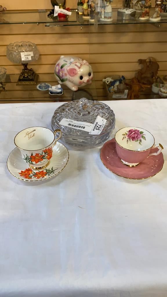 AYNSLEY AND ROYAL WINDSOR CHINA CUP AND SAUCERS AND LIDDED DISH