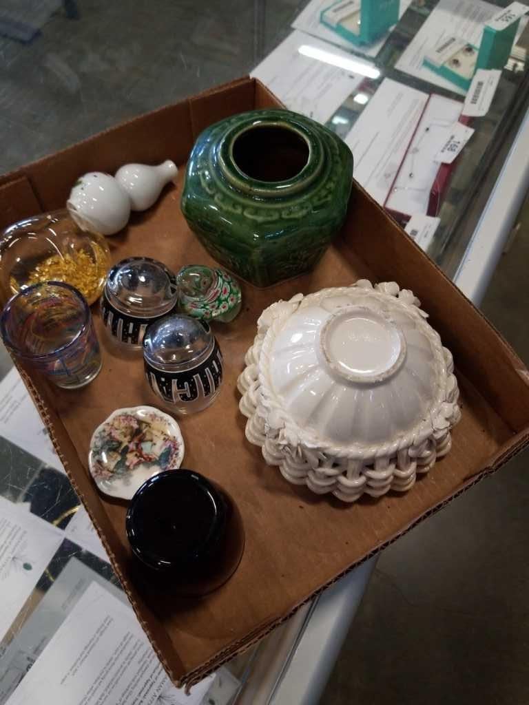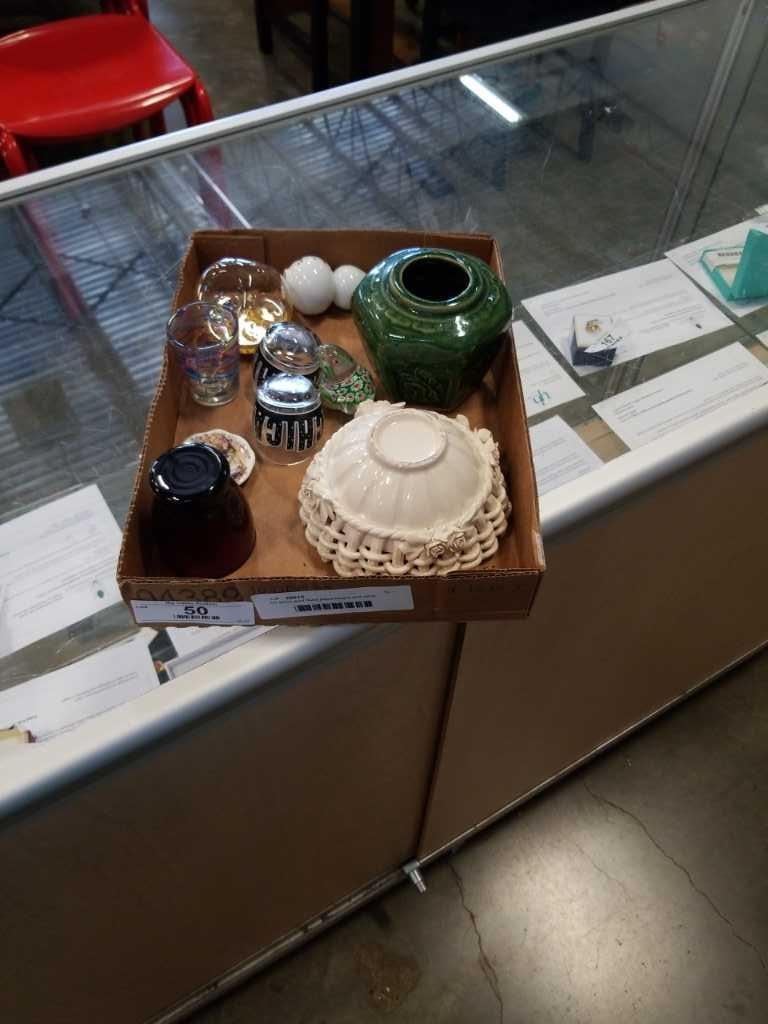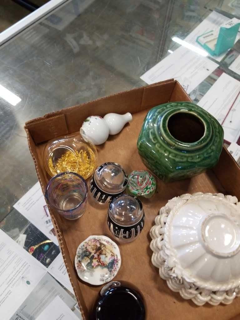 Art glass gold flake paperweight and other collectibles