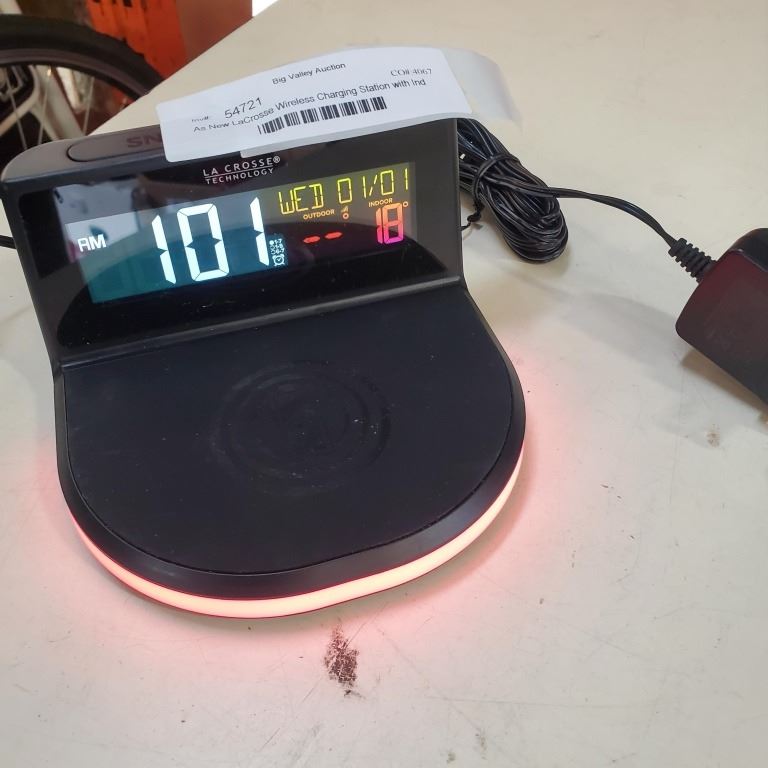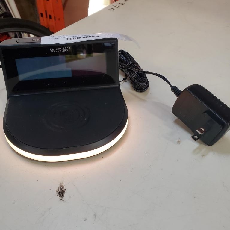 As New LaCrosse Wireless Charging Station/Alarm Clock with Indoor/Outdoor Temperature Retail $140
