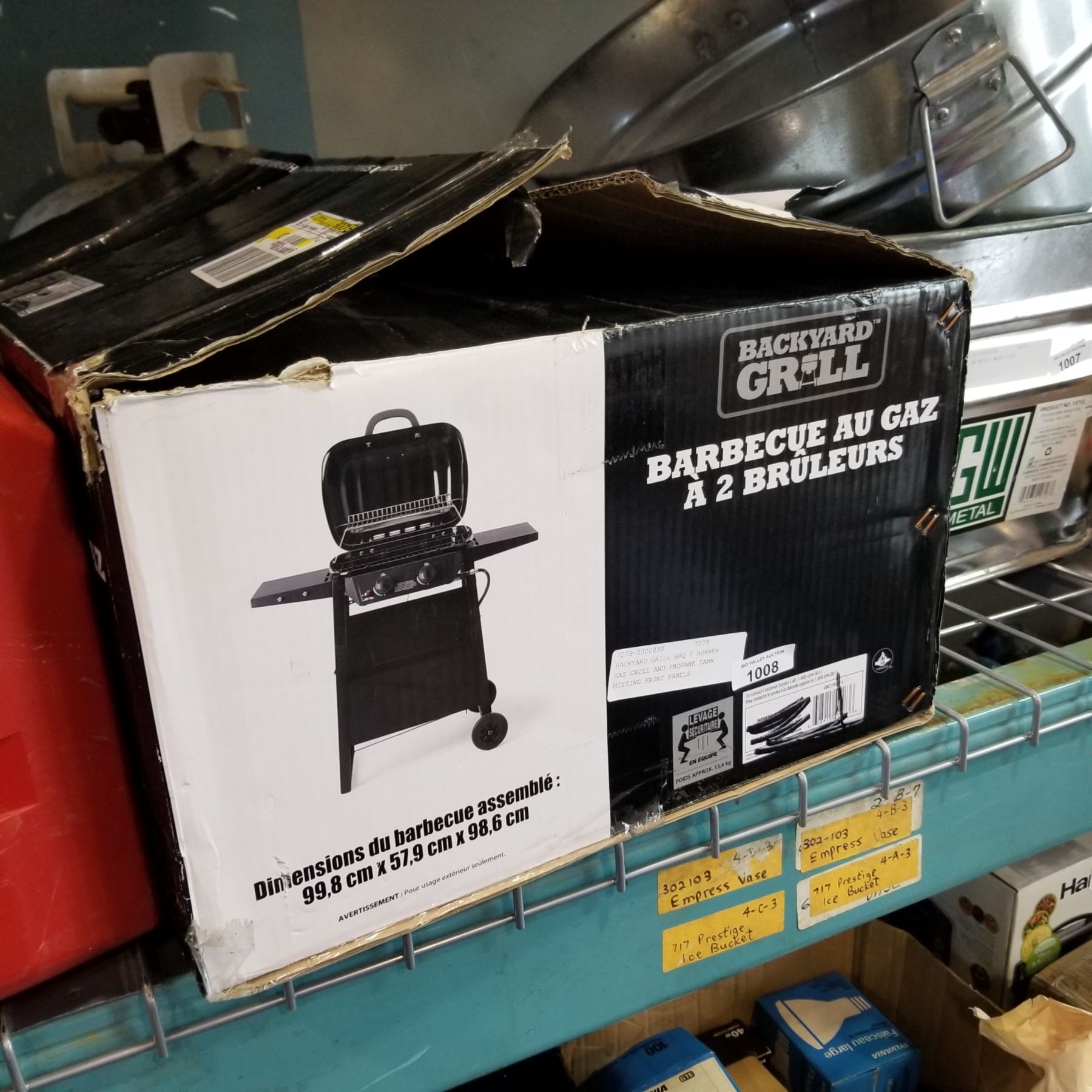 BACKYARD GRILL BBQ 2 BURNER GAS GRILL AND PROPANE TANK MISSING FRONT PANELS