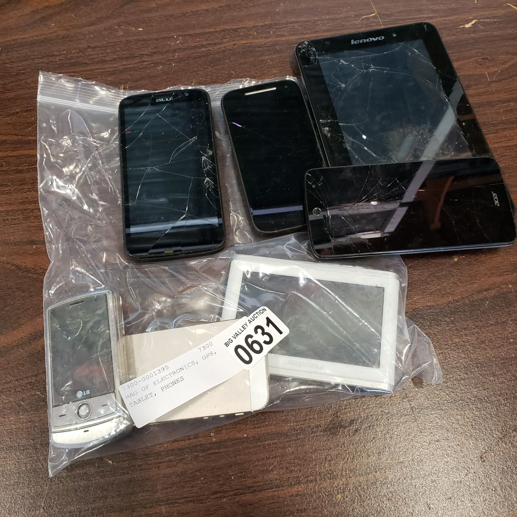 BAG OF ELECTRONICS, GPS, TABLET, PHONES