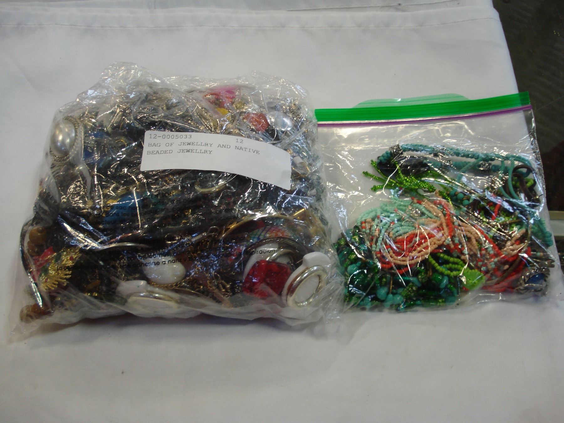 BAG OF JEWELLRY AND NATIVE BEADED JEWELLRY