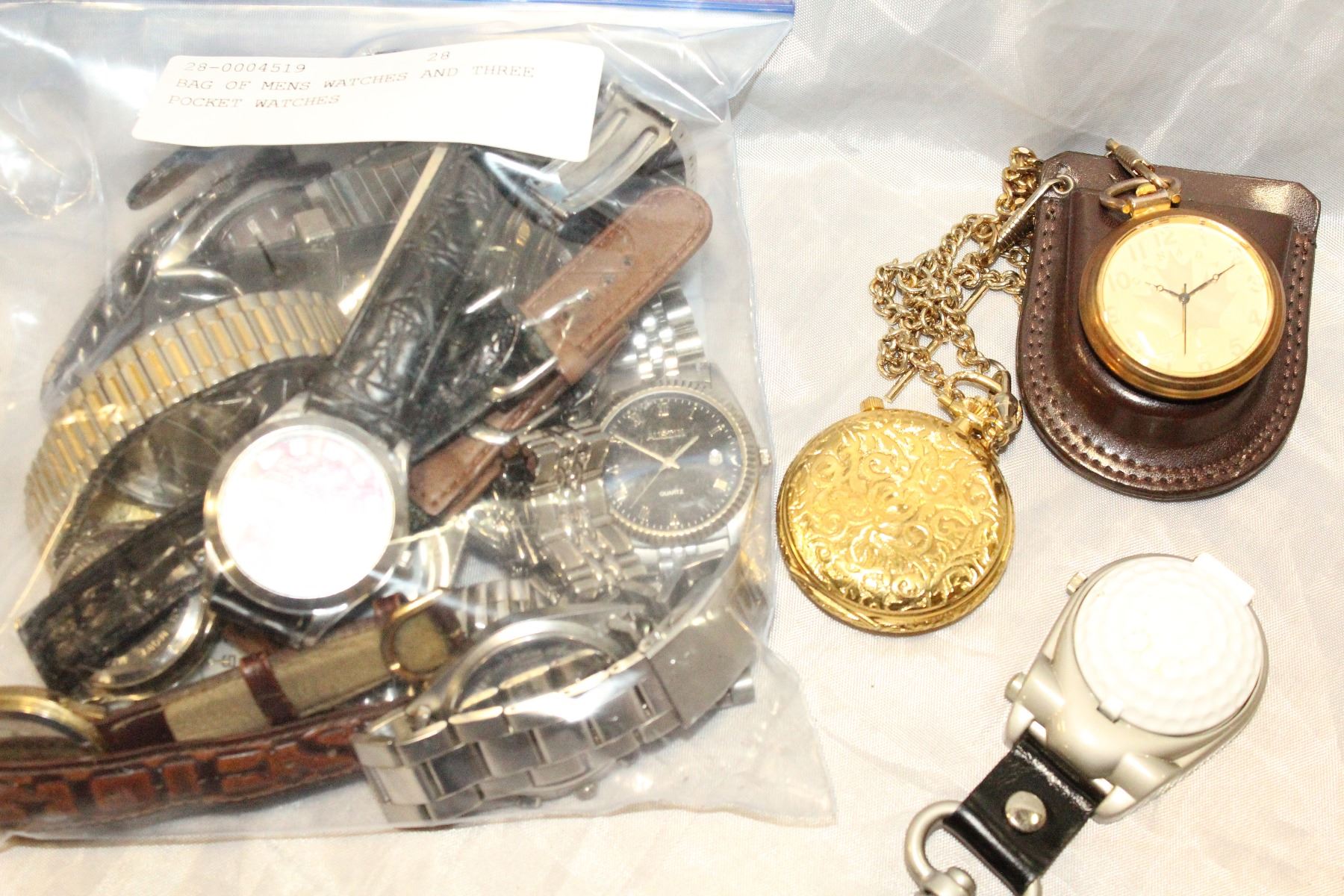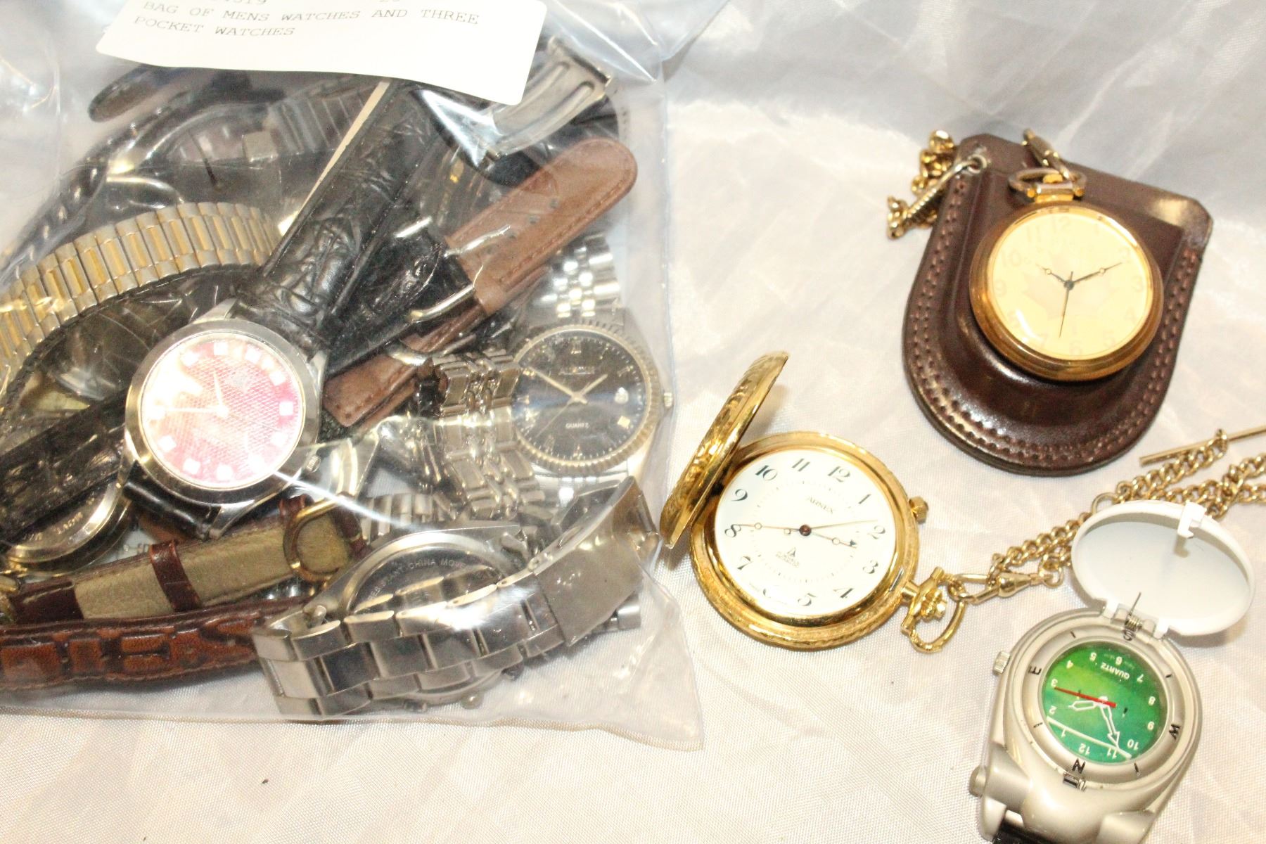 BAG OF MENS WATCHES AND THREE POCKET WATCHES