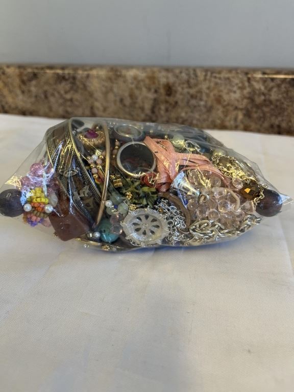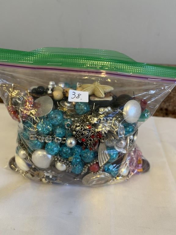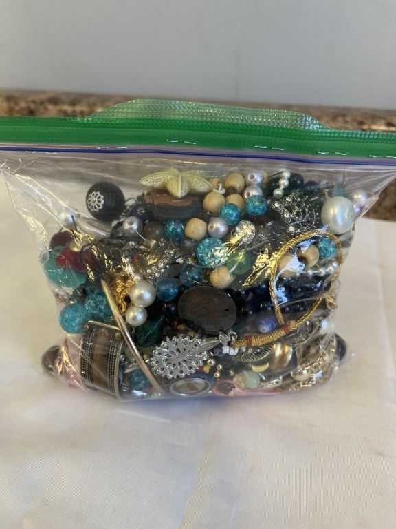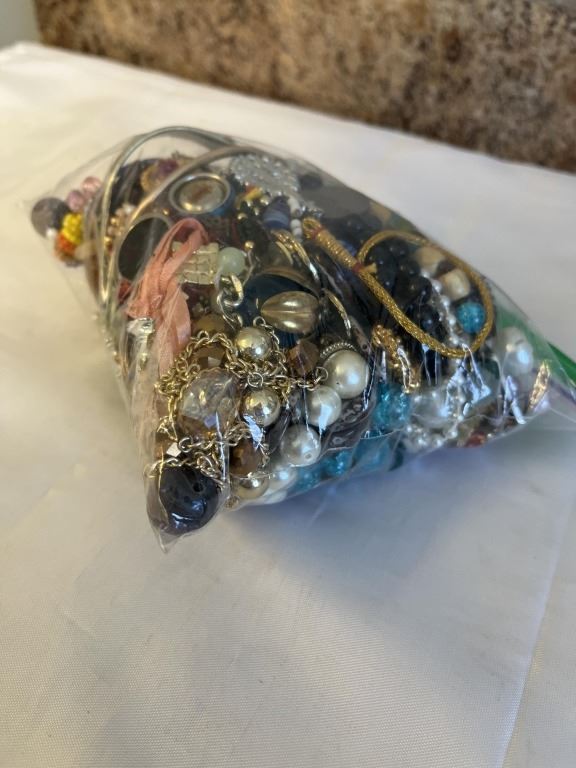 BAG OF MISC JEWELRY, BEADS AND PARTS