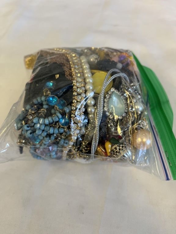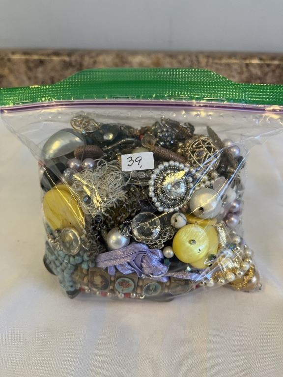 BAG OF MISC JEWELRY, BEADS AND PARTS