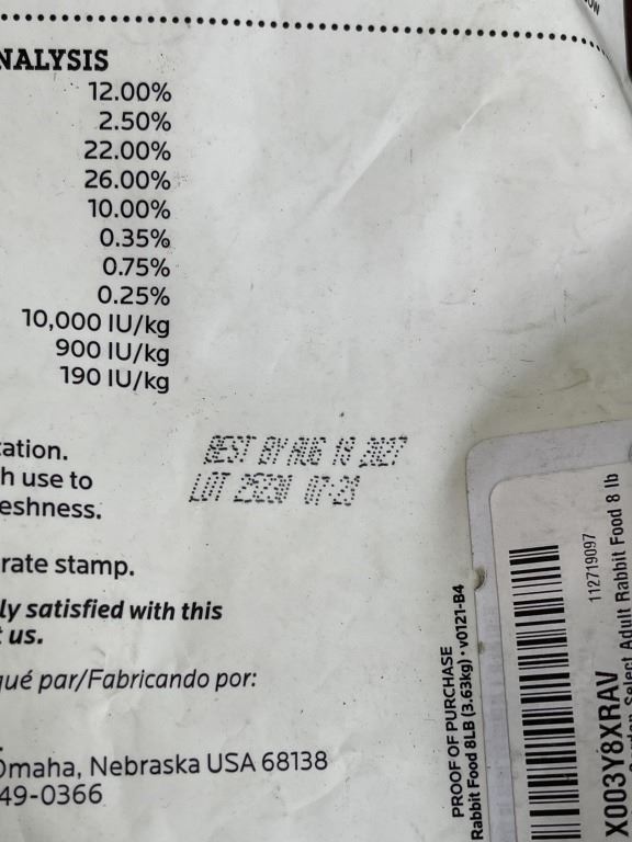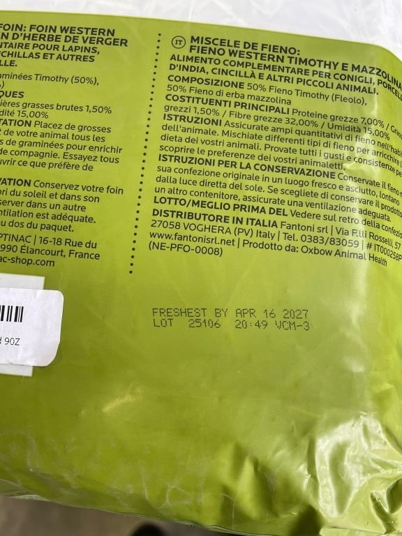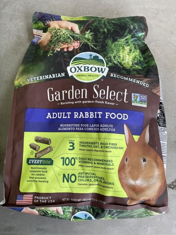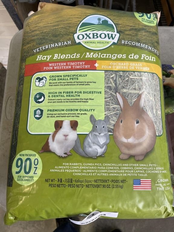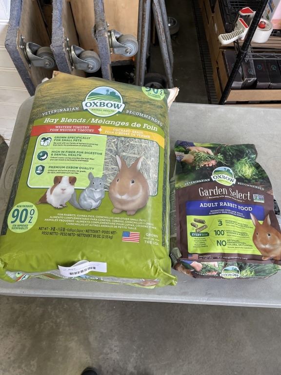 BAG OF OXFORD HAY BLEND AND BAG OF ADULT RABBIT FOOD