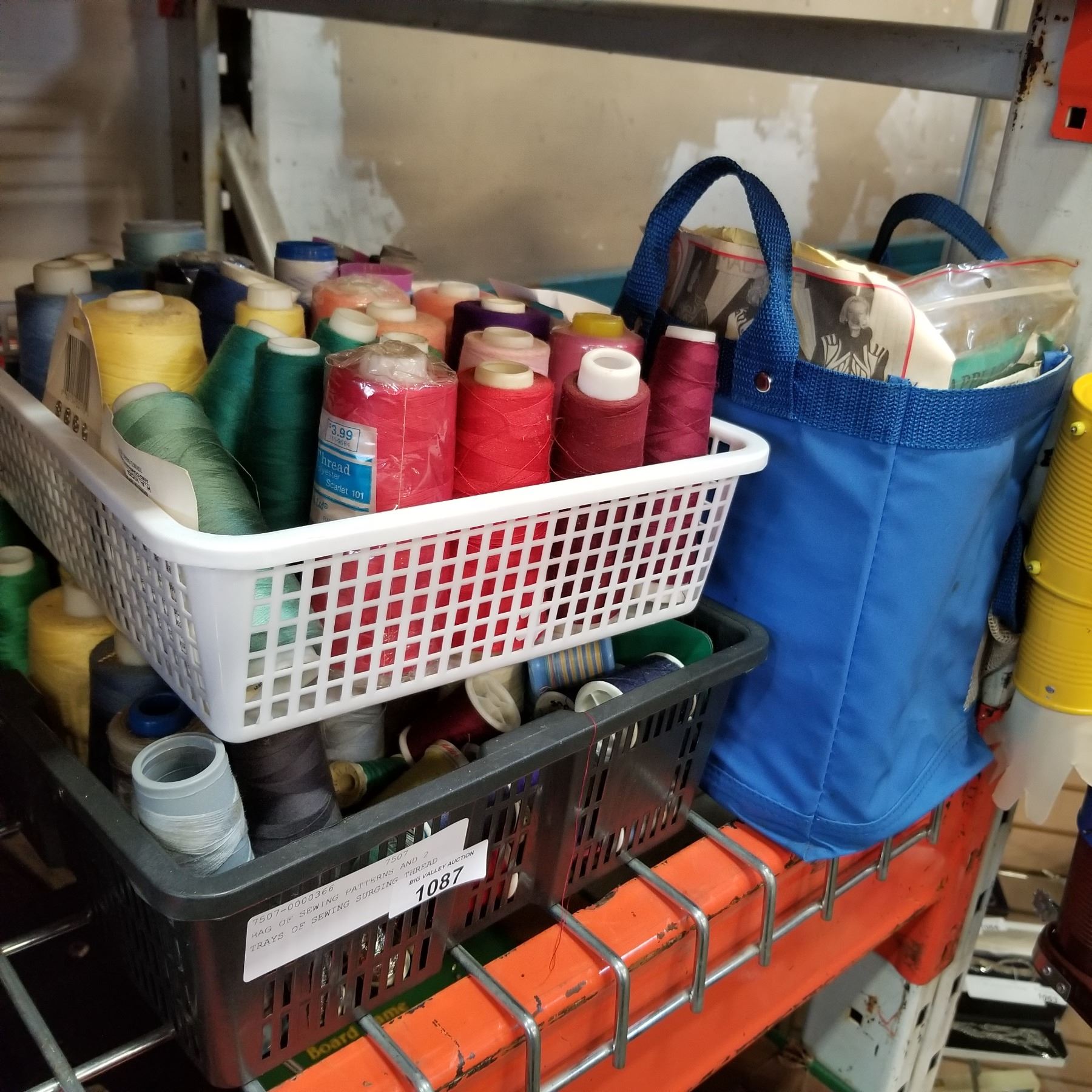 BAG OF SEWING PATTERNS AND 2 TRAYS OF SEWING SURGING THREAD