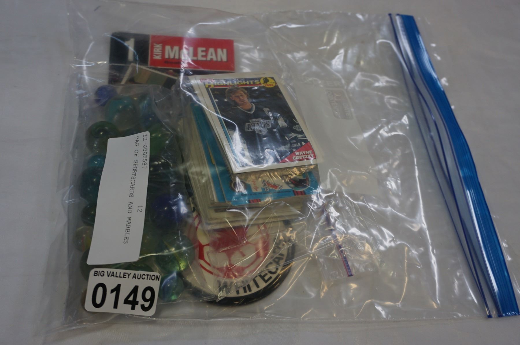 BAG OF SPORTSCARDS AND MARBLES