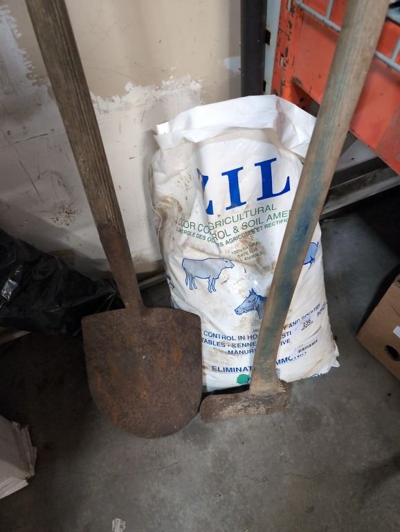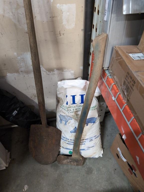BAG OF STALL DRY WITH SHOVEL AND AXE
