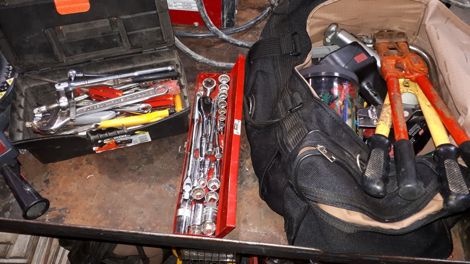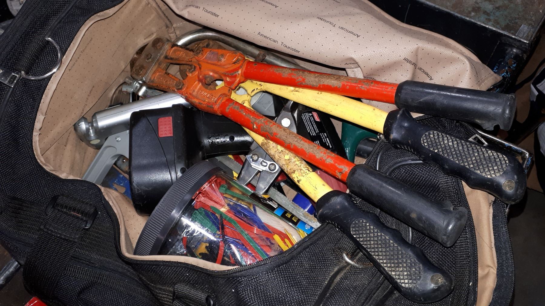 BAG OF TOOLS INCLUDING BOLT CUTTERS WITH TOOLBOX AND SOCKET SET