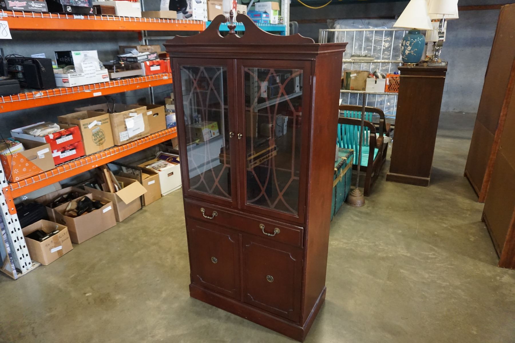 BAGDON AND GROSS GLASS DOOR MAHOGANY DISPLAY CABINET