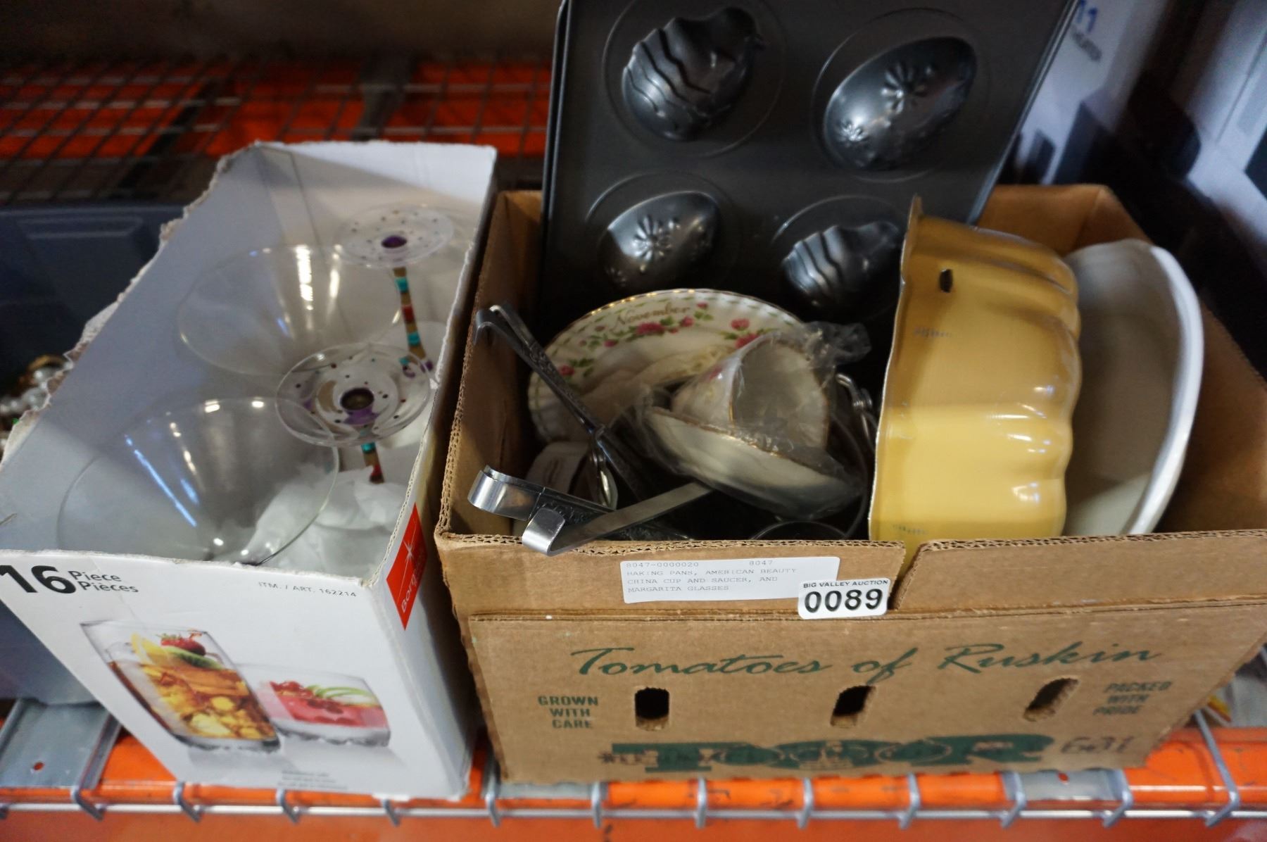 BAKING PANS, AMERICAN BEAUTY CHINA CUP AND SAUCER, AND MARGARITA GLASSES