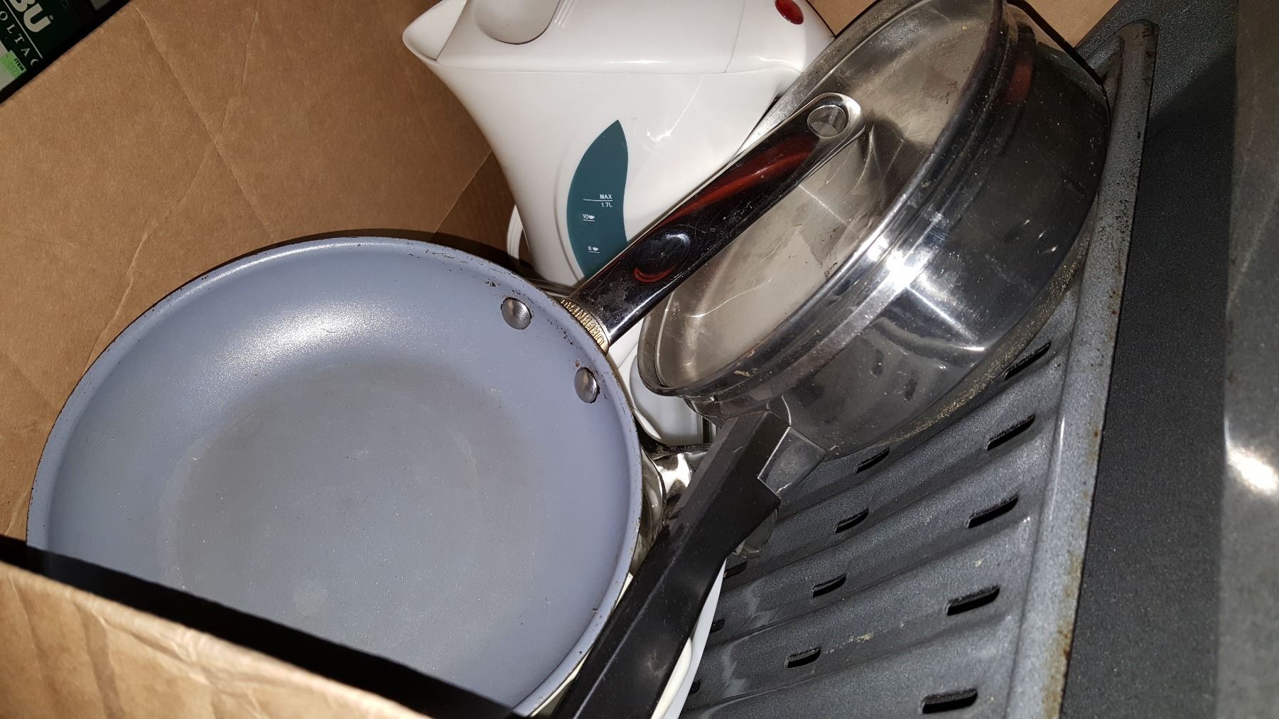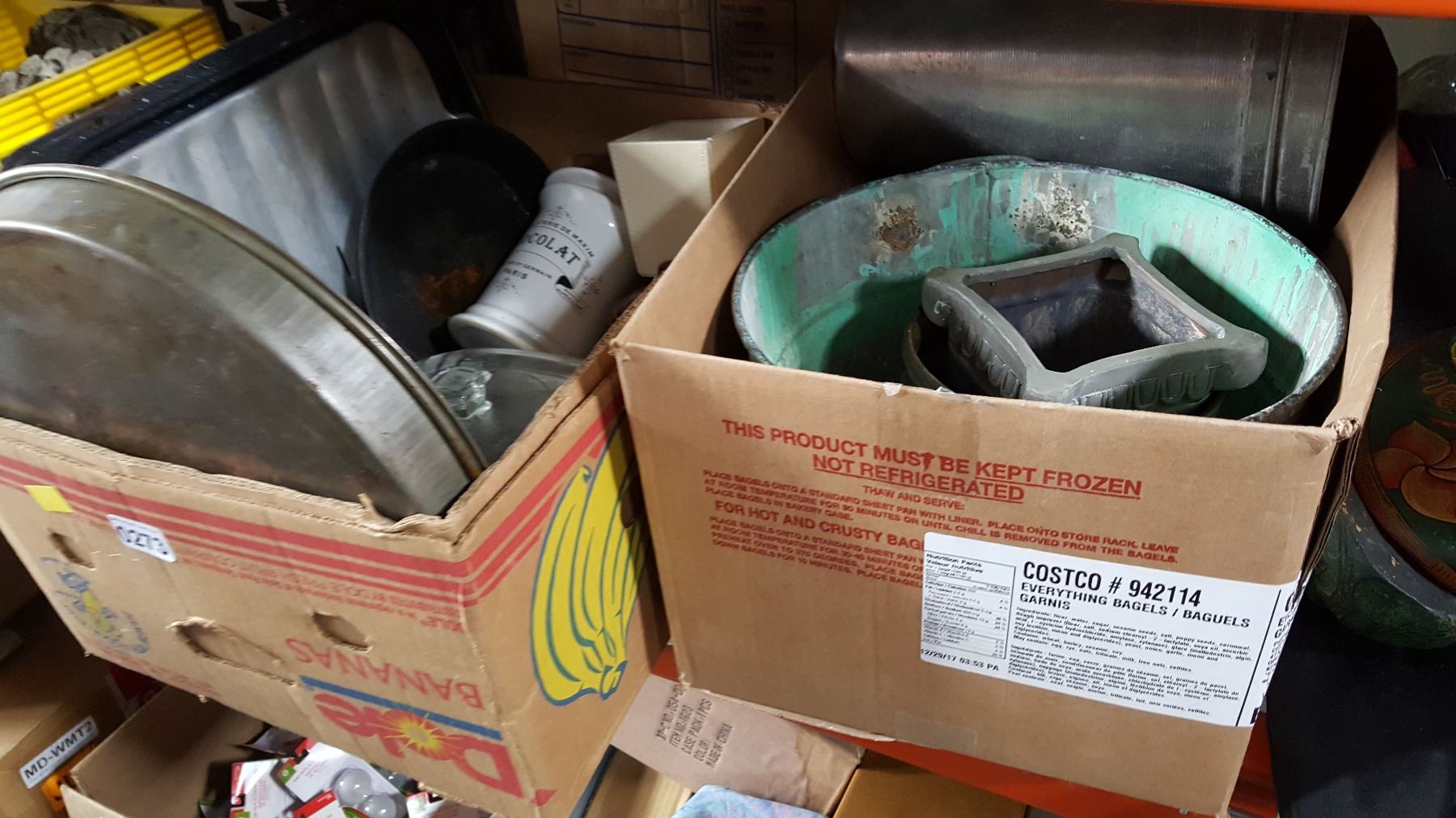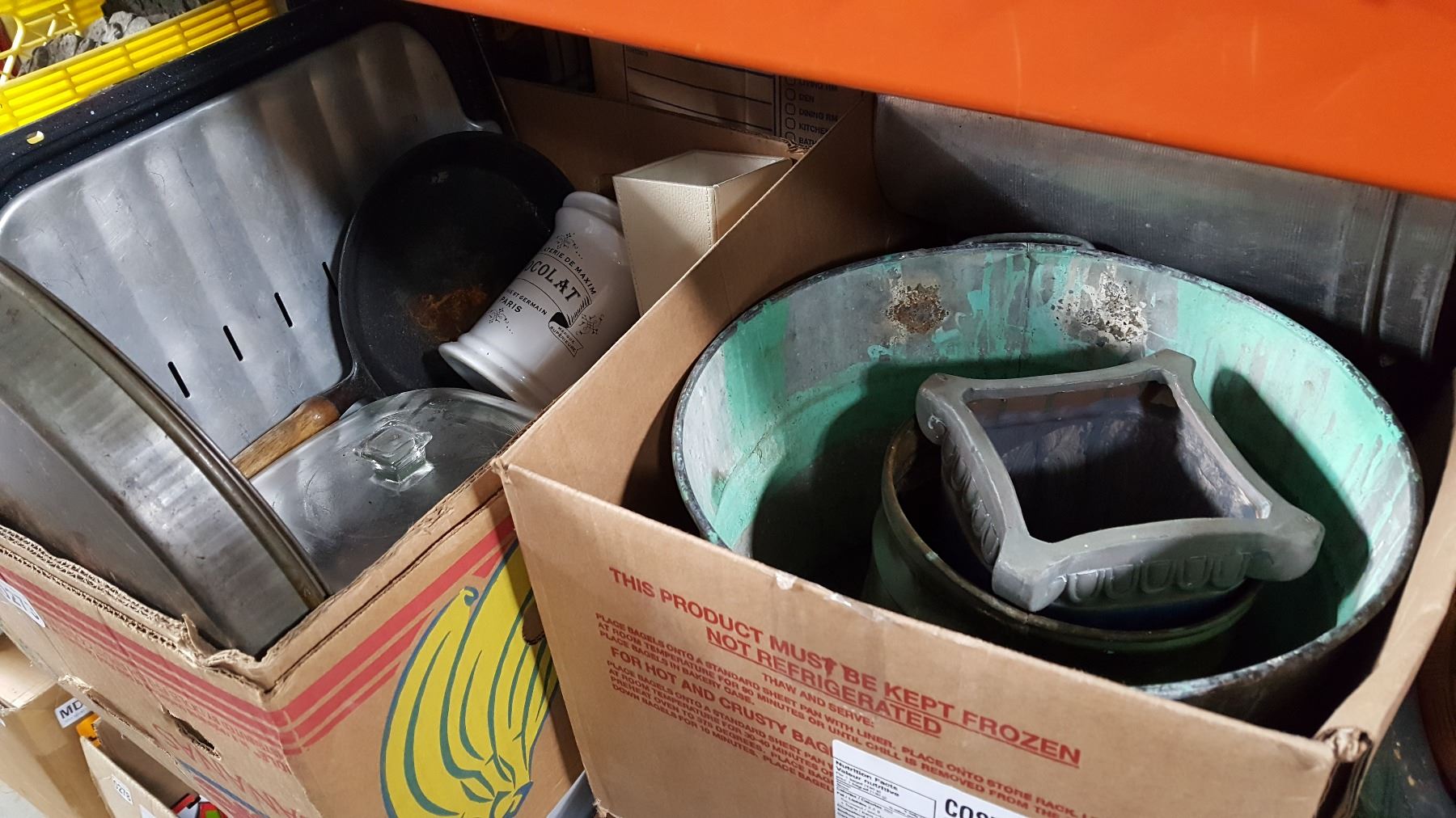 BAKING PANS, CAST IRON PAN, ELECTRIC SKILLET, AND BOX OF PANS