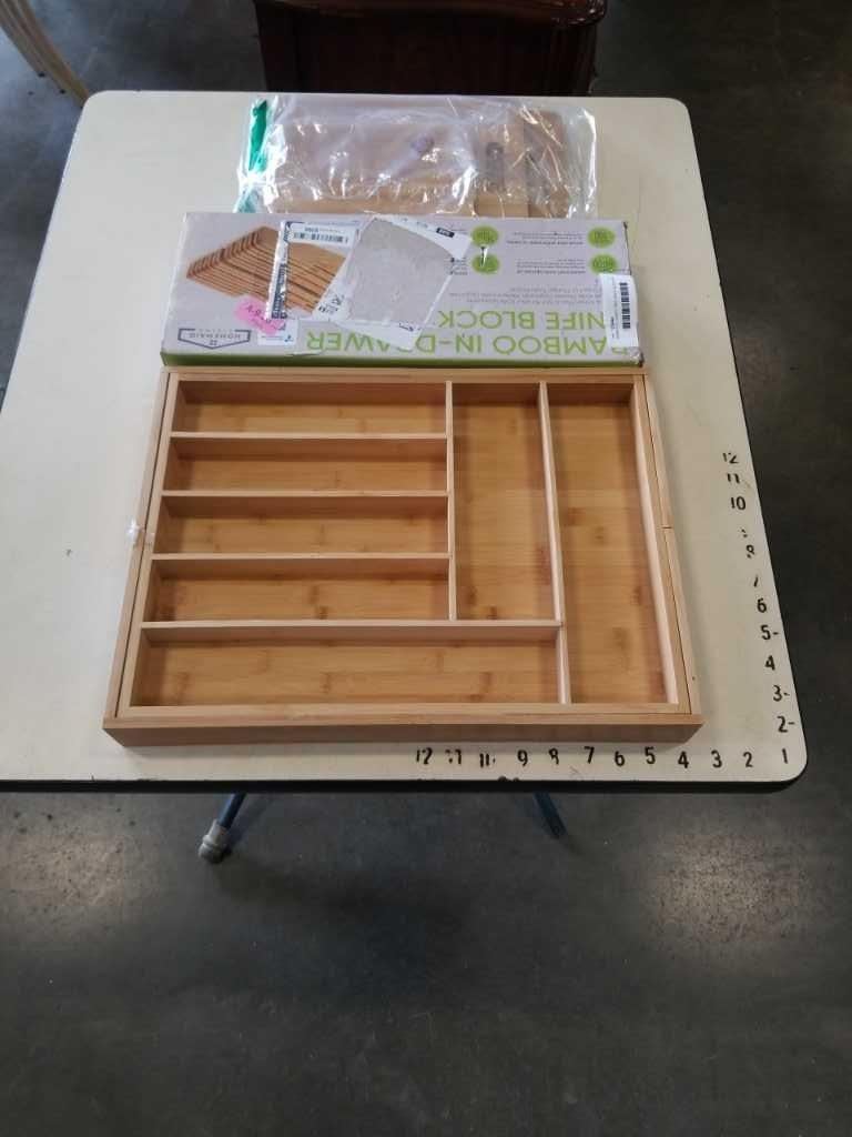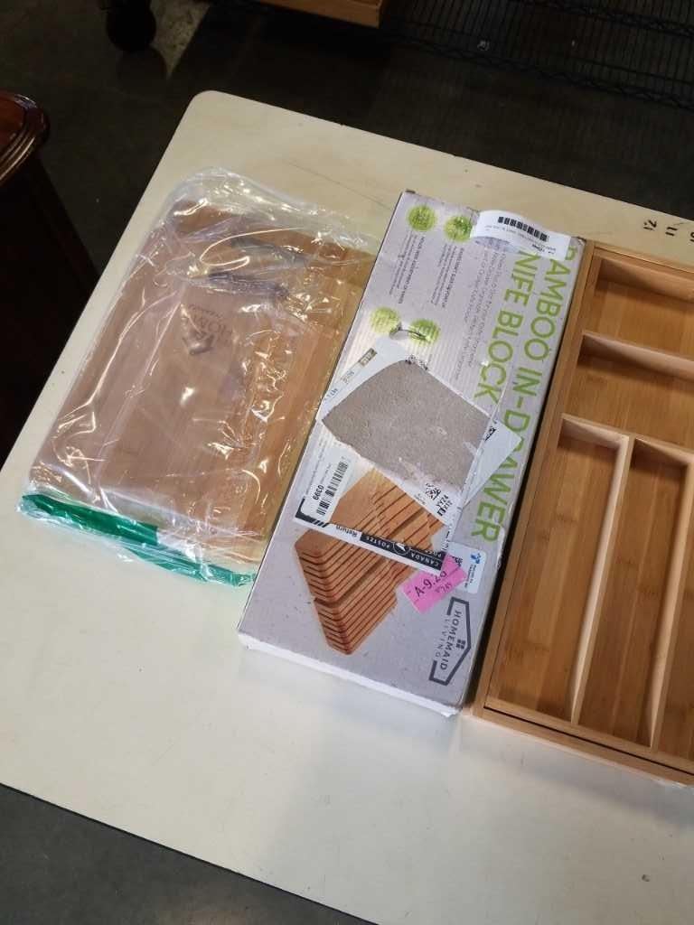 BAMBOO CUTLERY TRAY, KNIFE BLOCK AND 3PC CUTTING BOARD SET