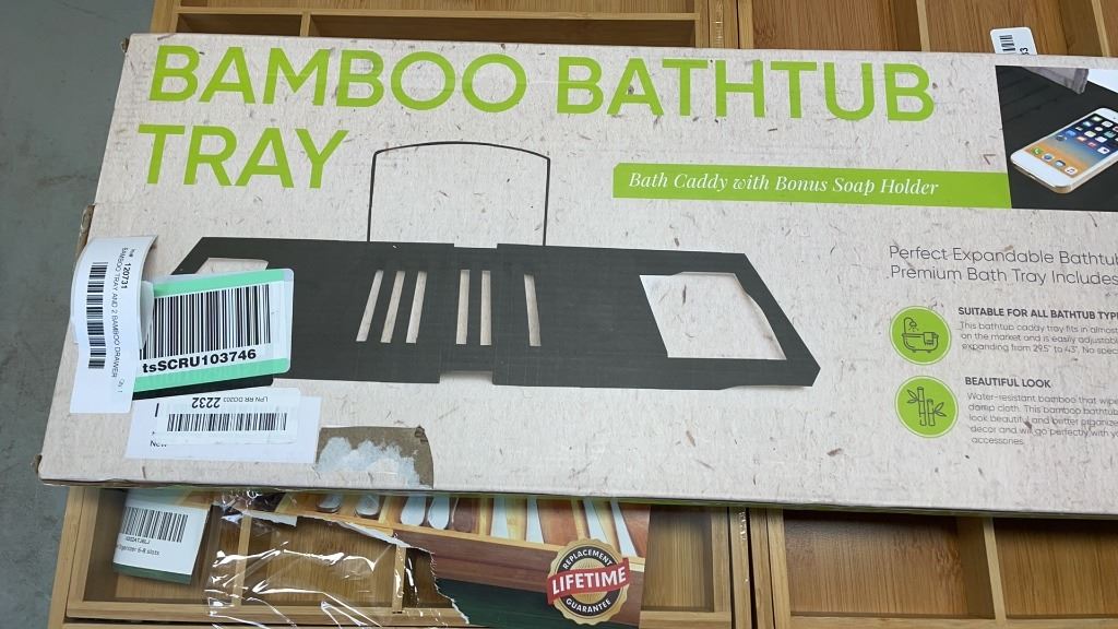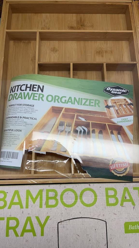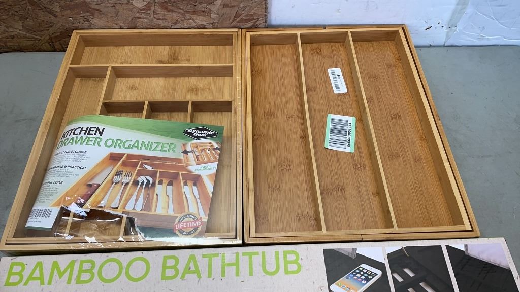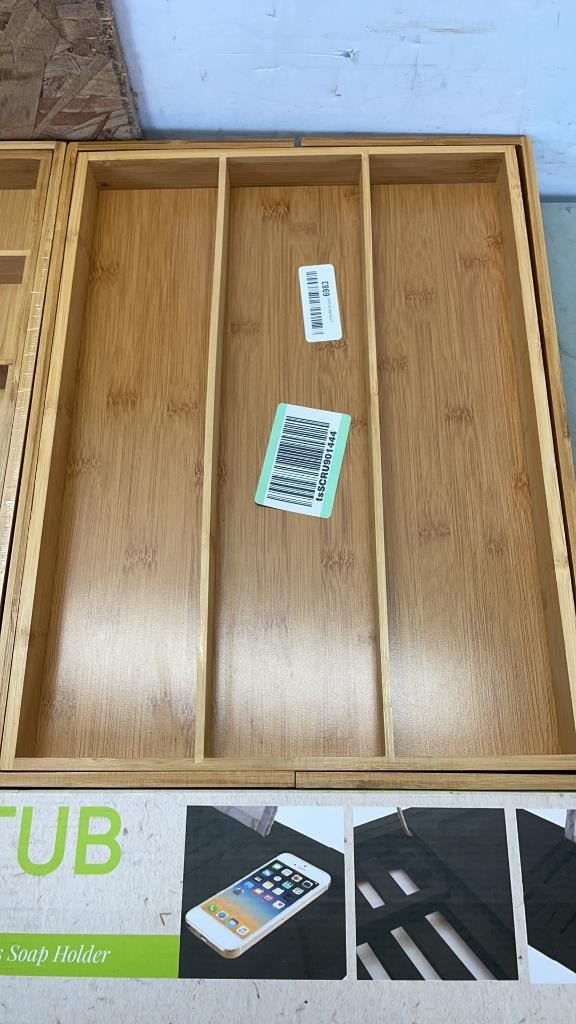 BAMBOO TRAY AND 2 BAMBOO DRAWER ORGANIZERS