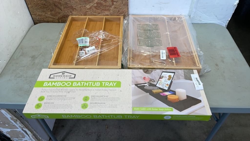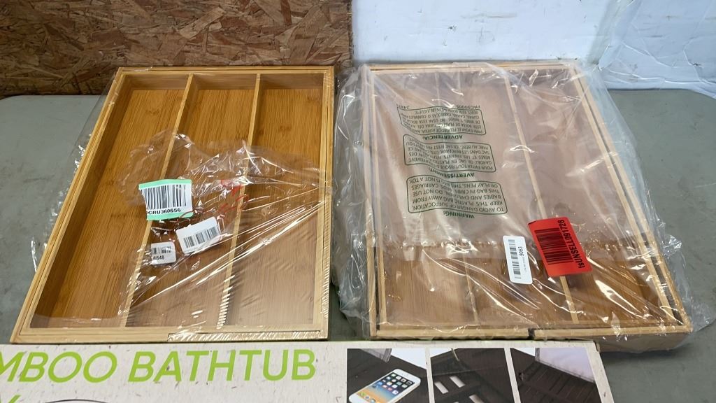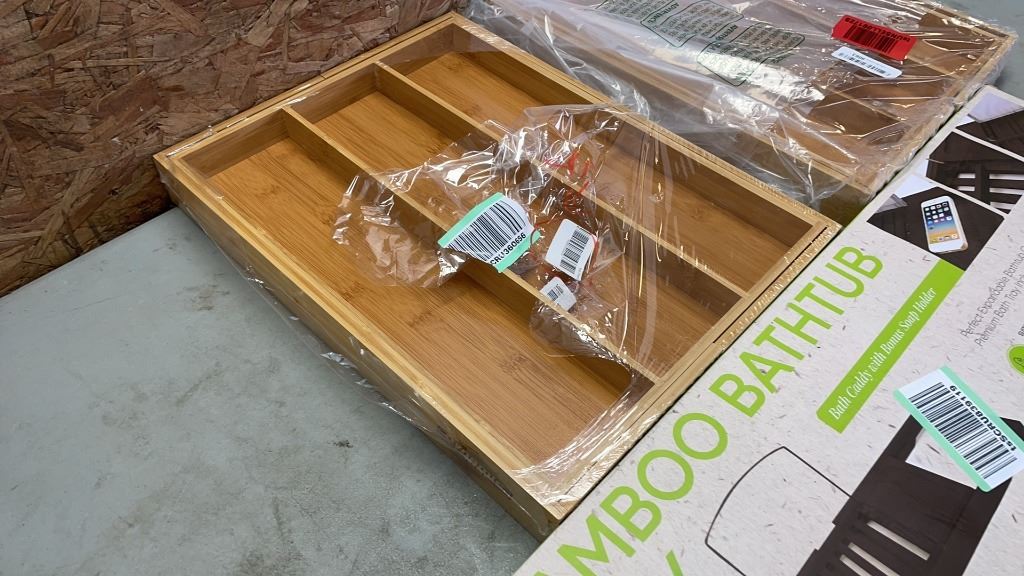 BAMBOO TRAY AND 2 BAMBOO DRAWER ORGANIZERS
