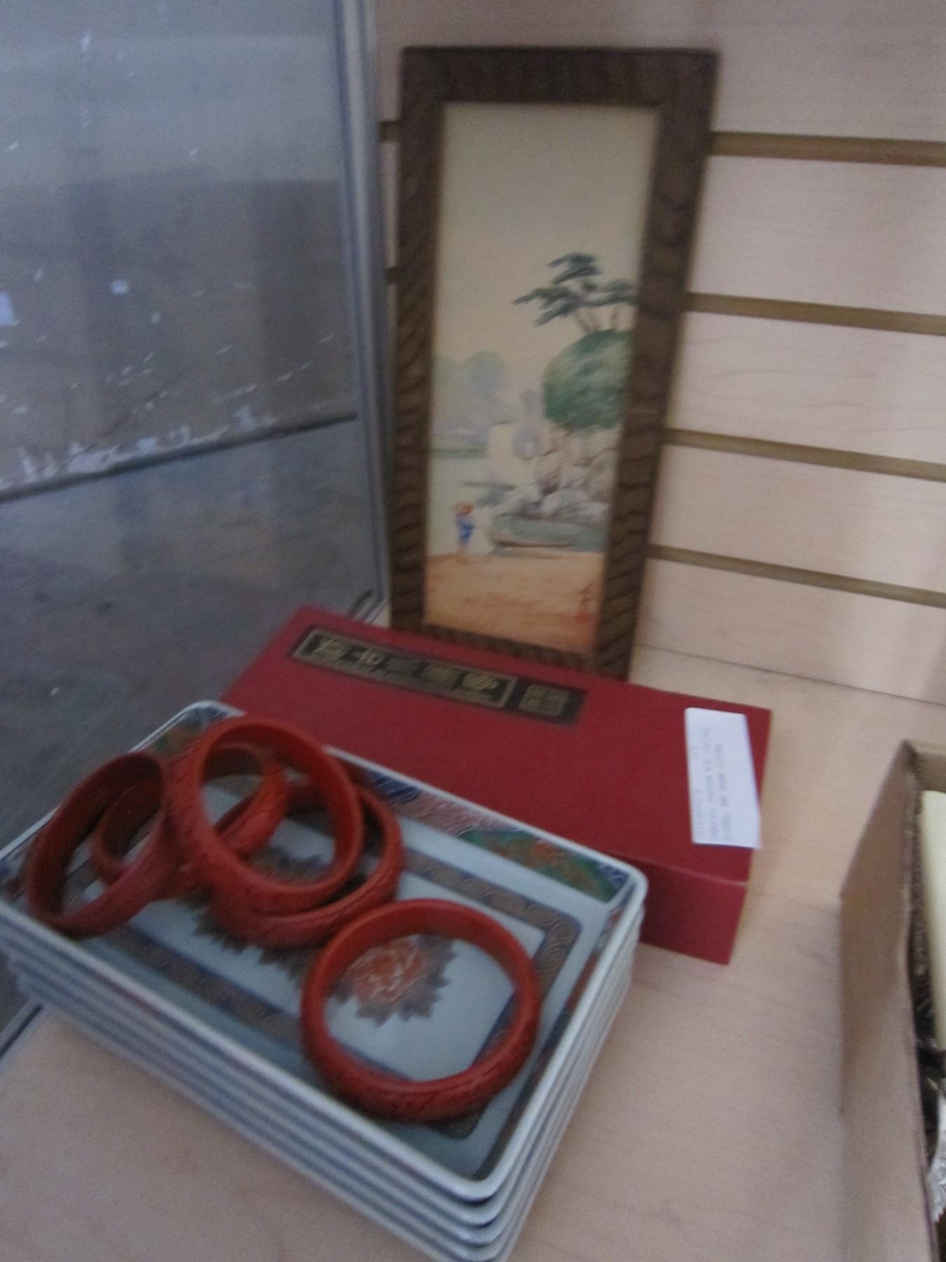 BANGLES, EASTERN MINI DIVIDER, DISHES, AND FRAMED PICTURE