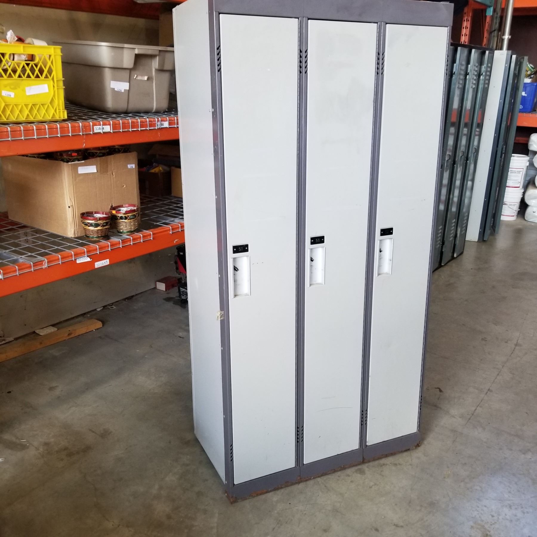 BANK OF 3 LOCKERS 6 FOOT TALL, 3 FOOT WIDE, 18 INCHES DEEP