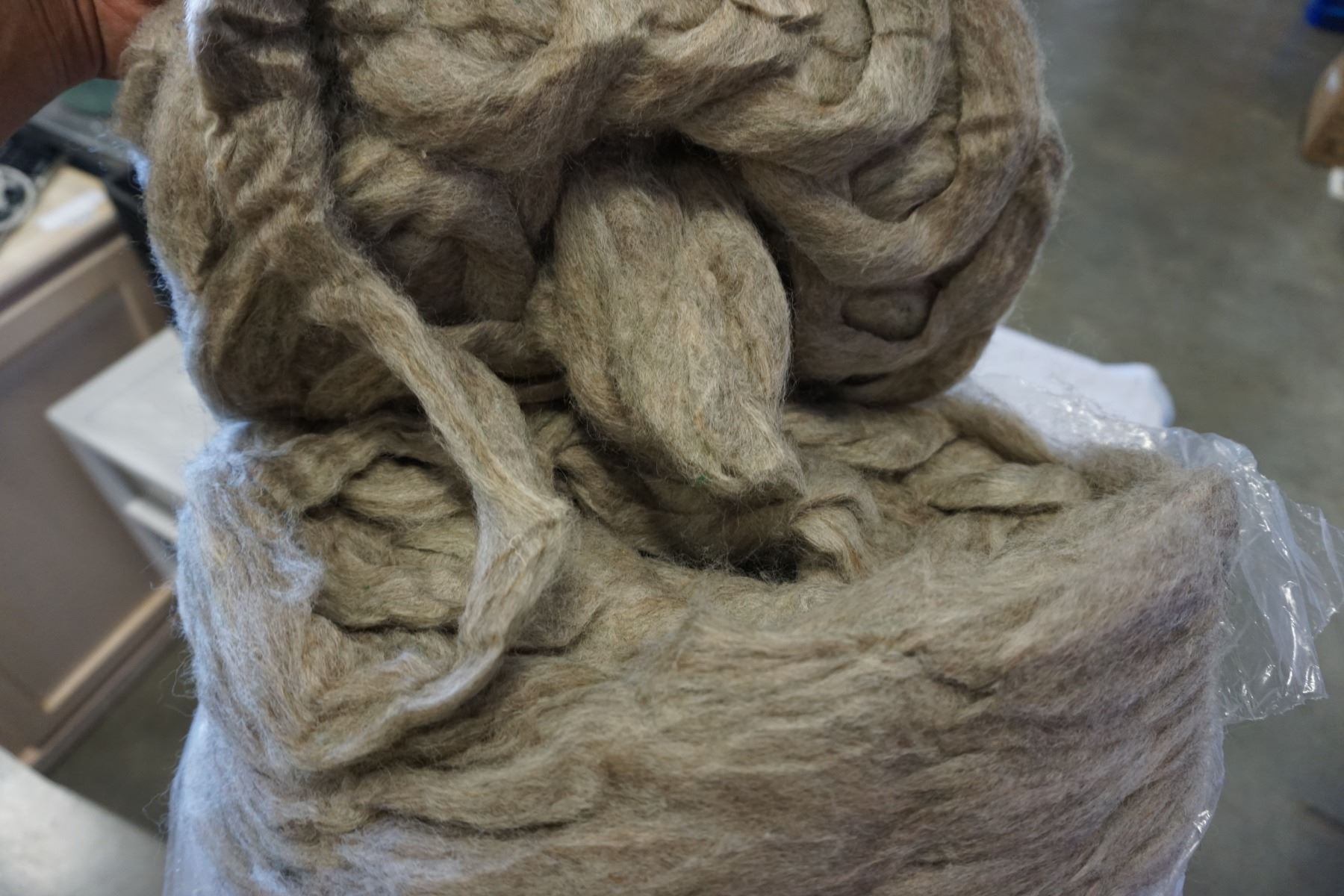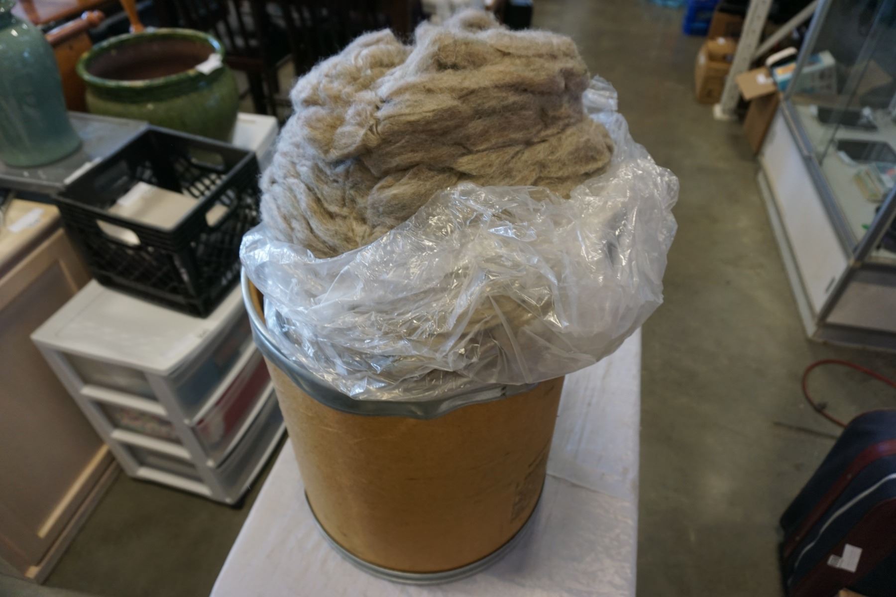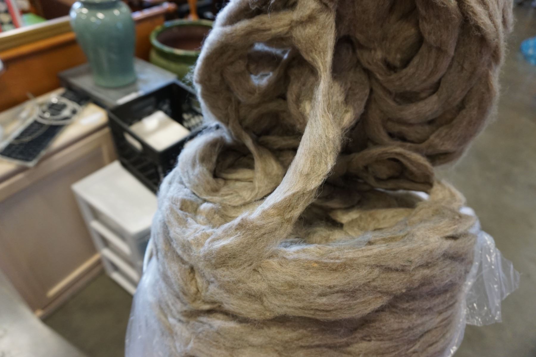 BARREL OF GREY WOOL YARN