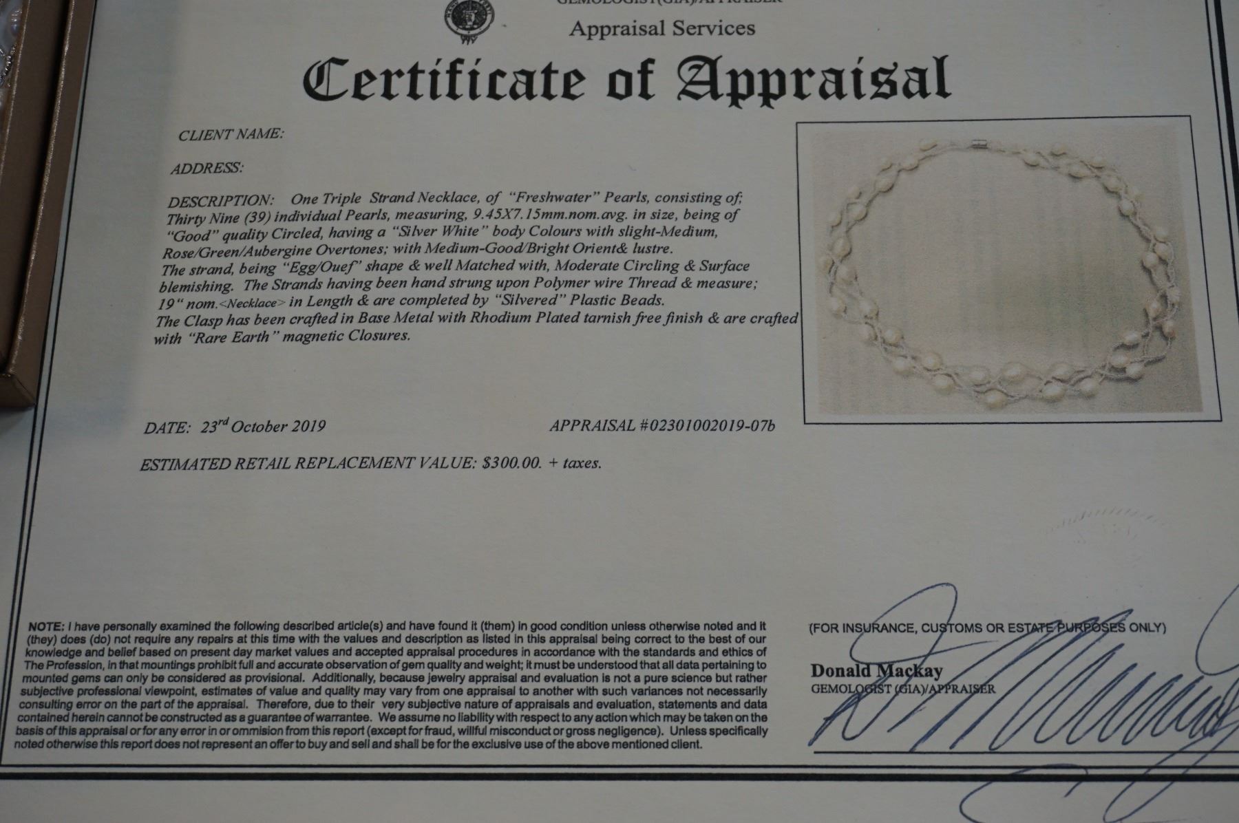 BASE METAL GENUINE FRESHWATER PEARL 18" NECKLACE W/ MAGNETIC CLASPS 39 PEARLS W/ APPRAISAL $300