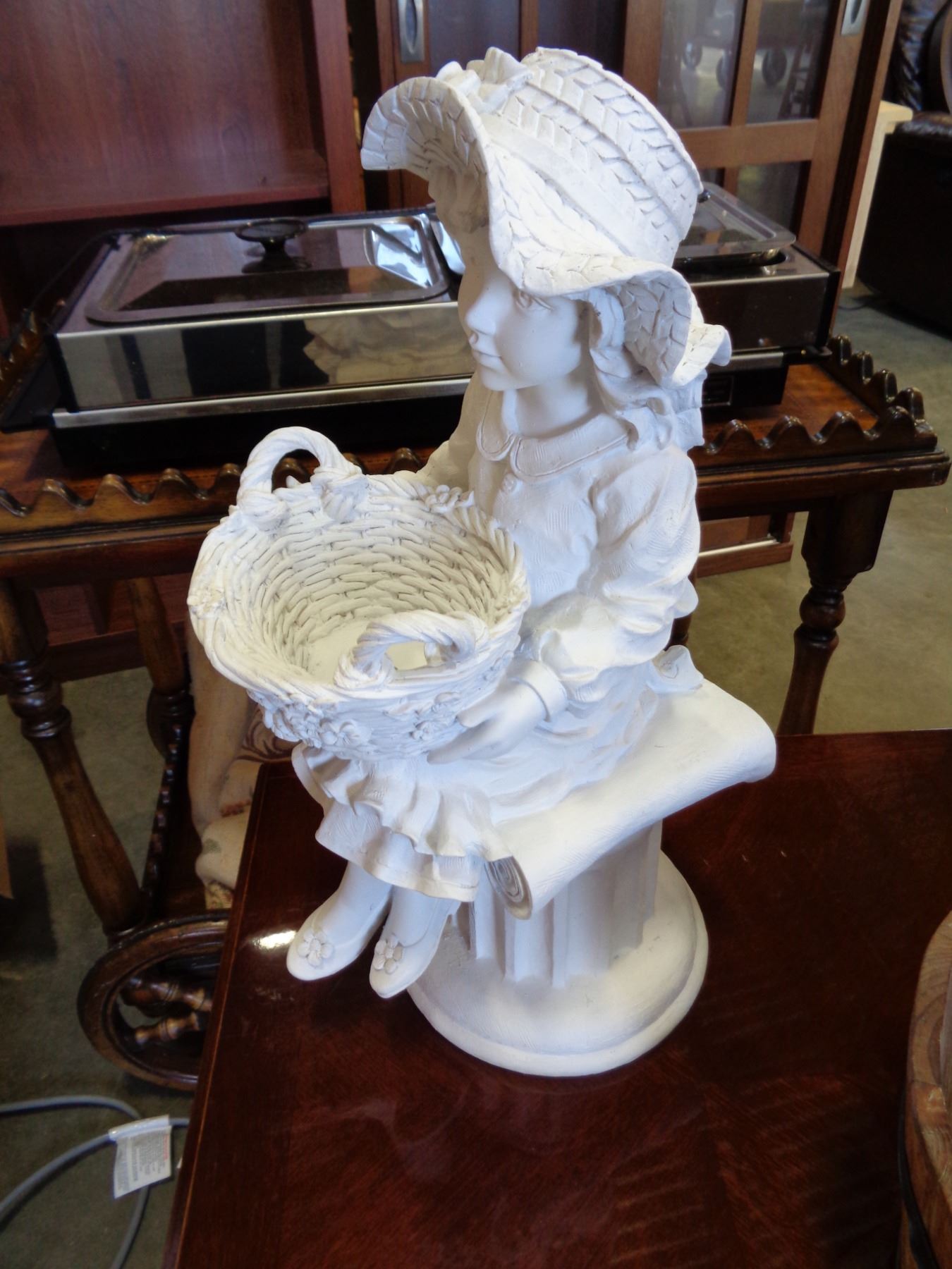 BASKET GIRL ON PILLAR GARDEN FIGURE
