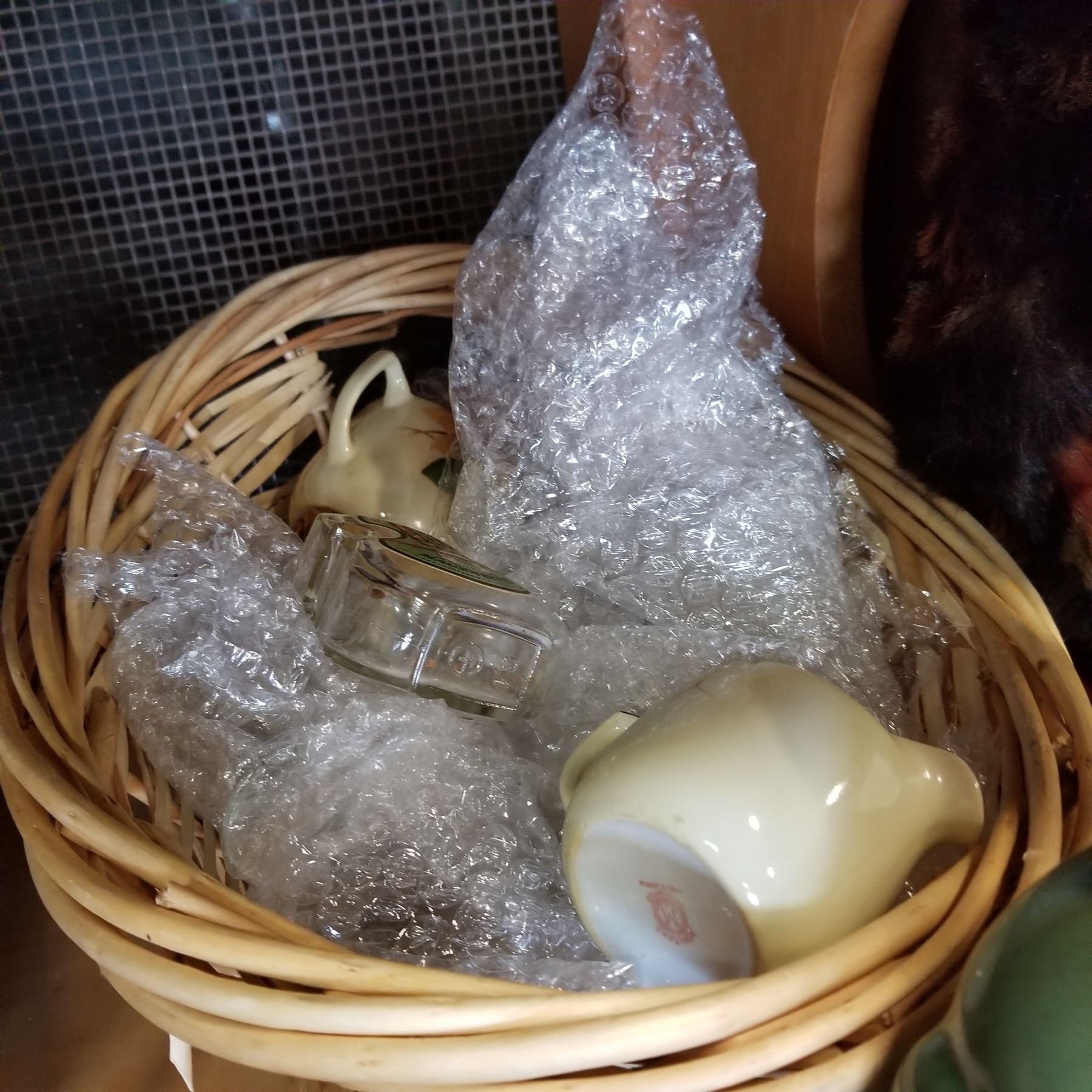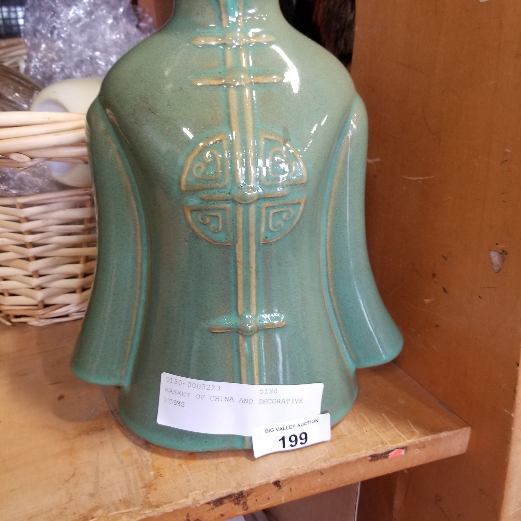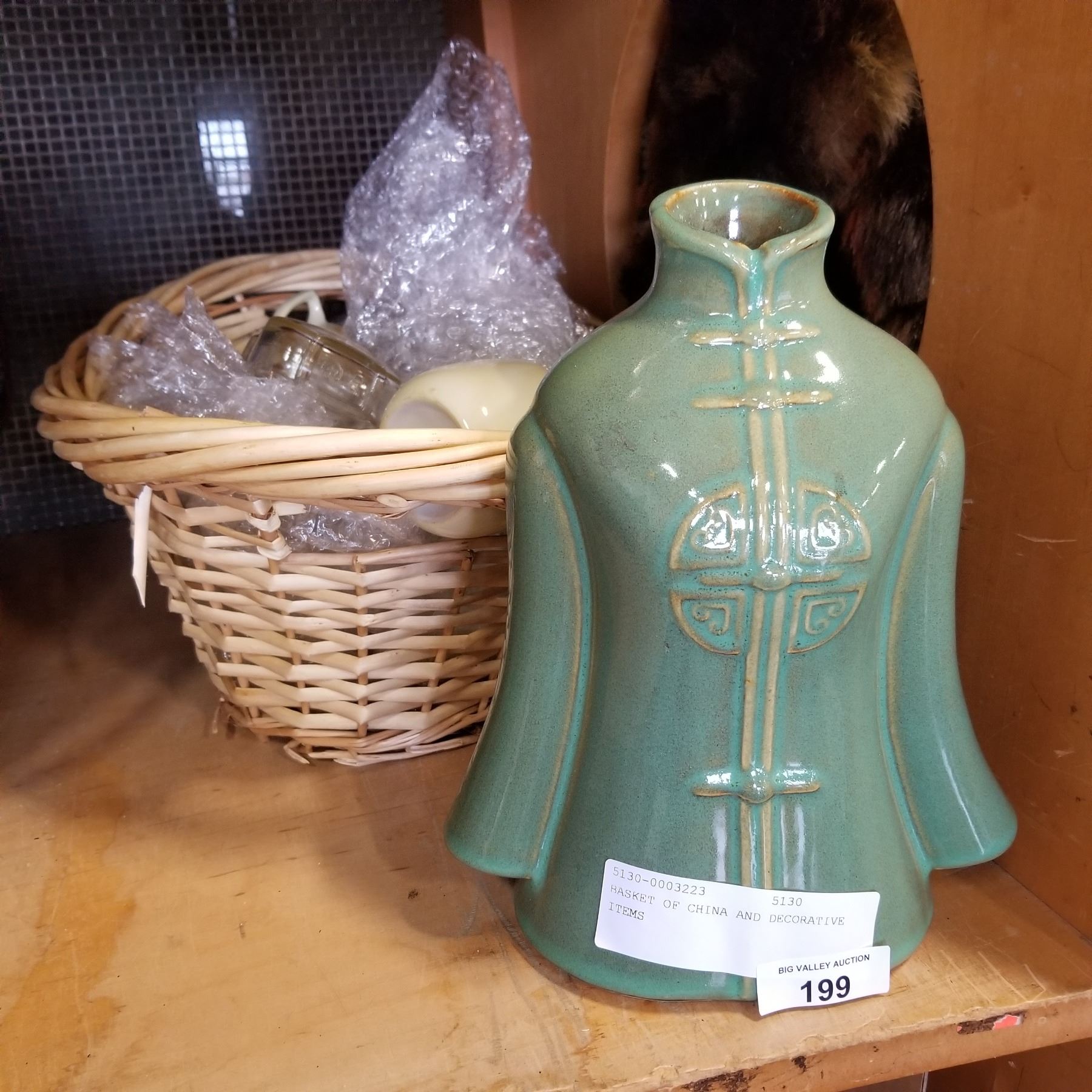 BASKET OF CHINA AND DECORATIVE ITEMS