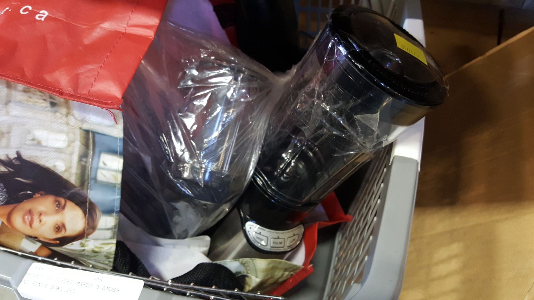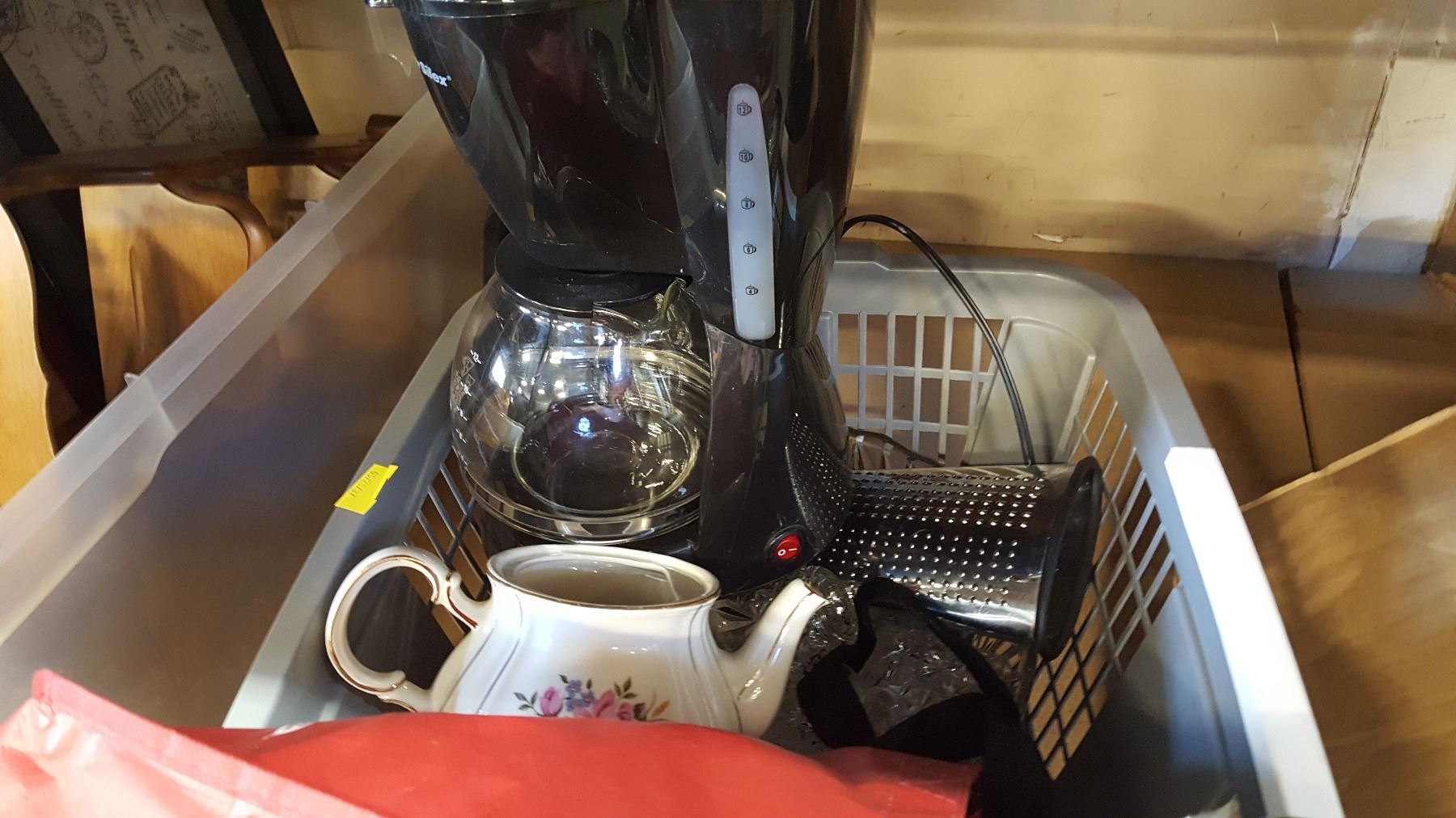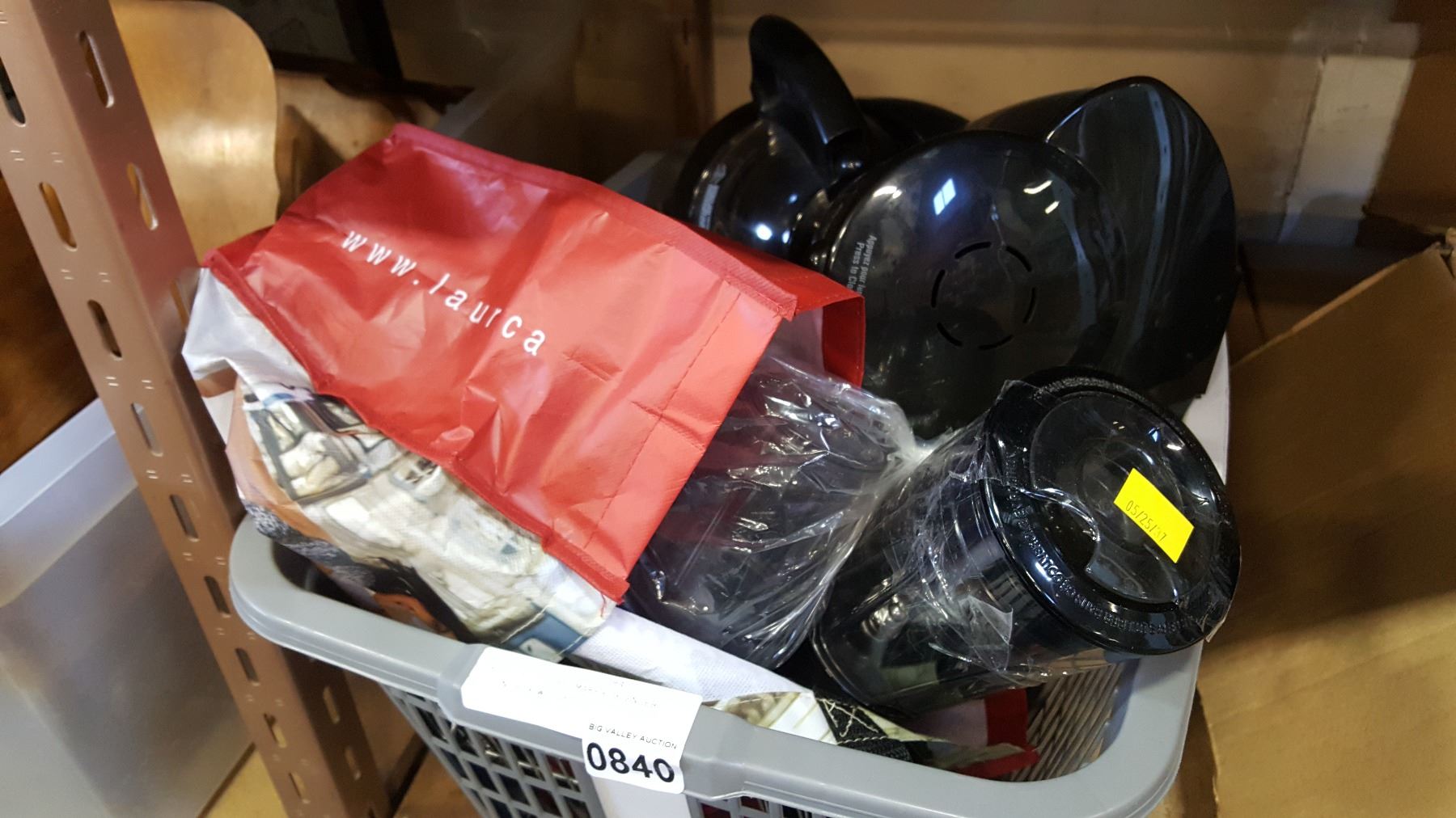 BASKET OF COFFEE MAKER BLENDER AND PUNCH BOWL SET