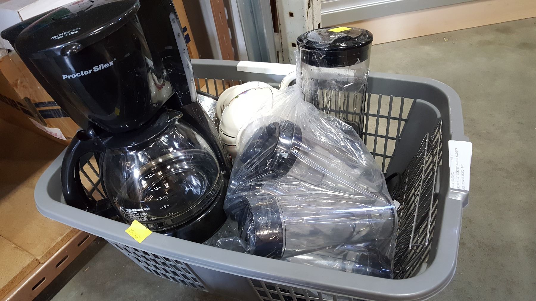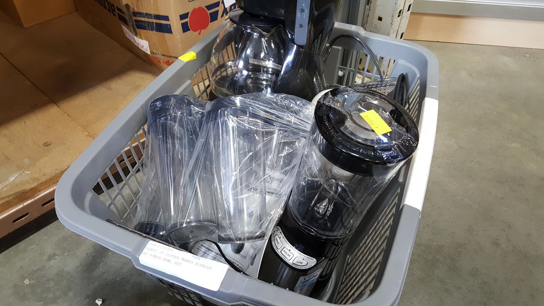 BASKET OF COFFEE MAKER BLENDER AND PUNCH BOWL SET
