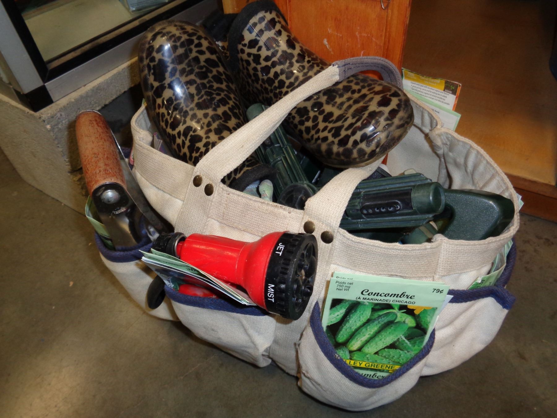 BASKET OF GARDENING SUPPLIES AND SEED POUCHES